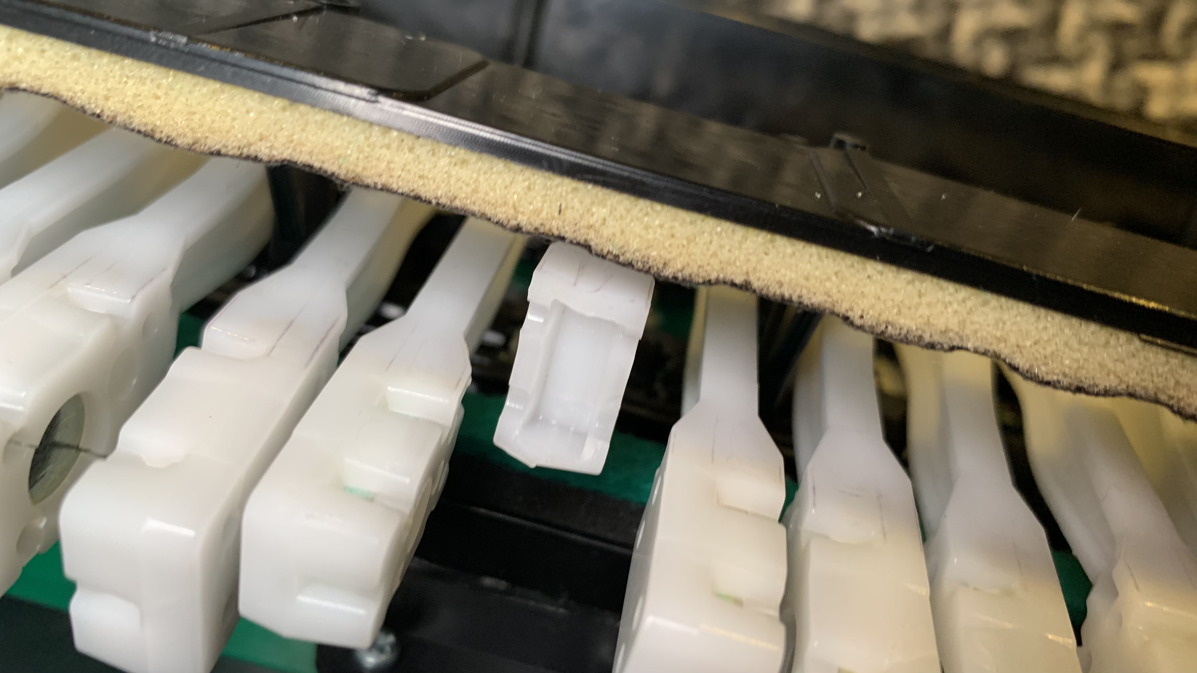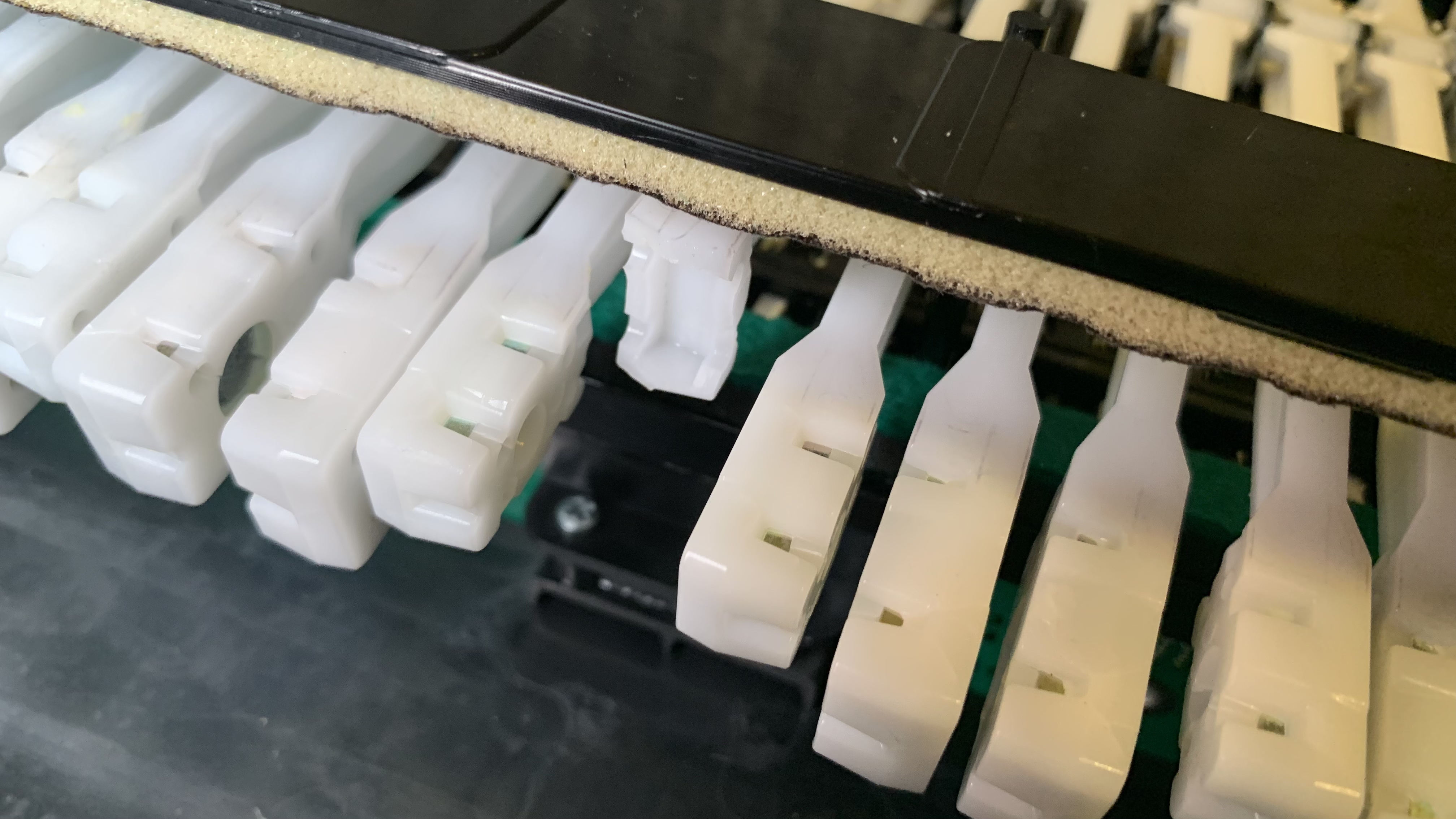 При этом состояние остальных молоточков - ахренеть. По приложенным снимкам видно, насколько всё печально после трех лет использования. Даже на тех клавишах, которые вообще, практически, никогда не используются.