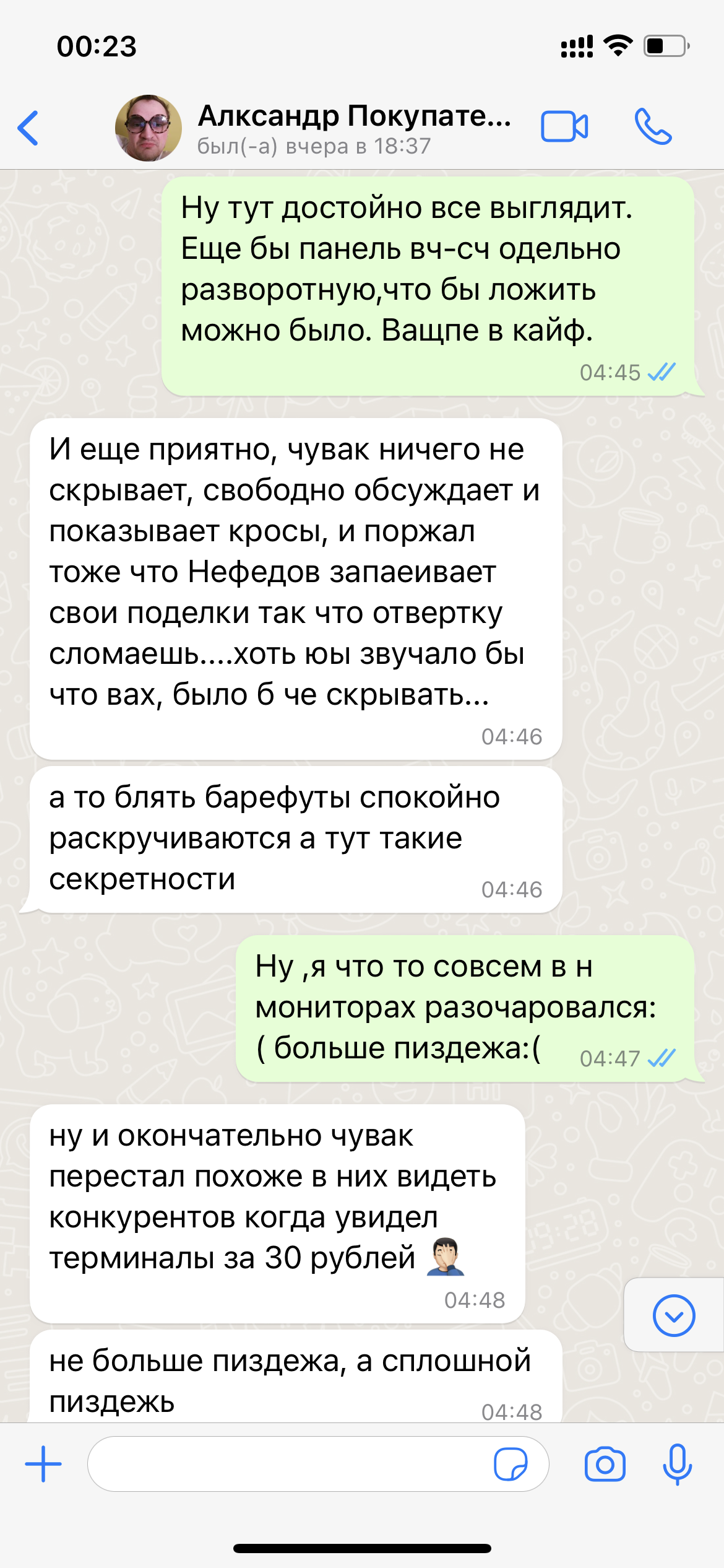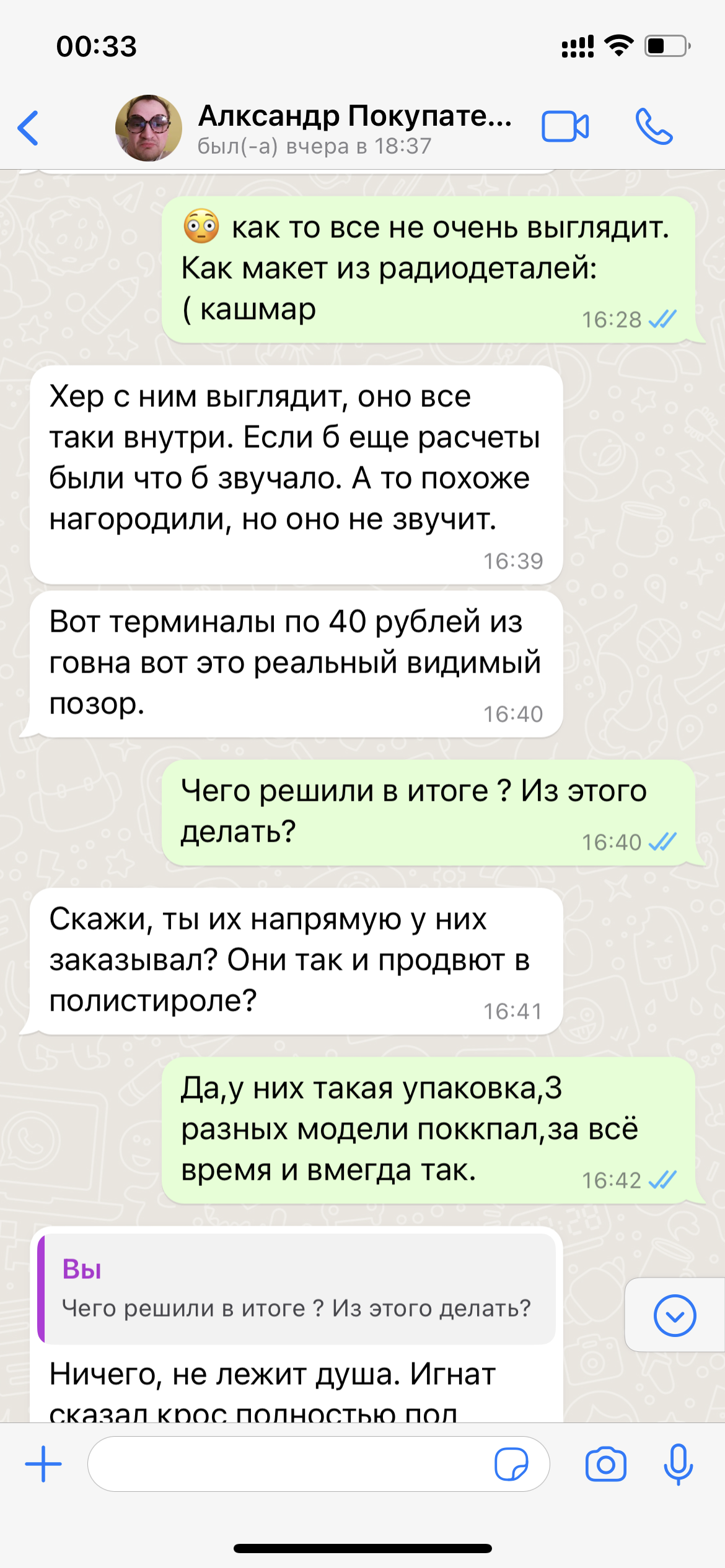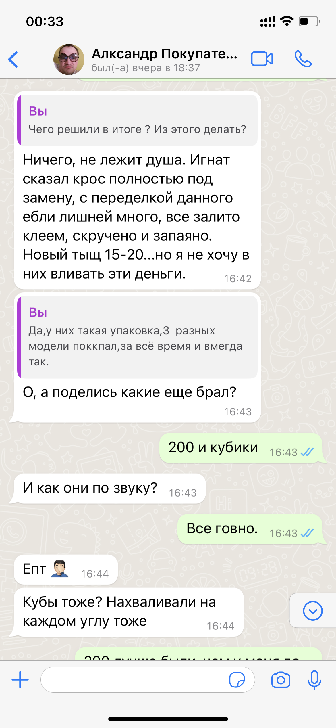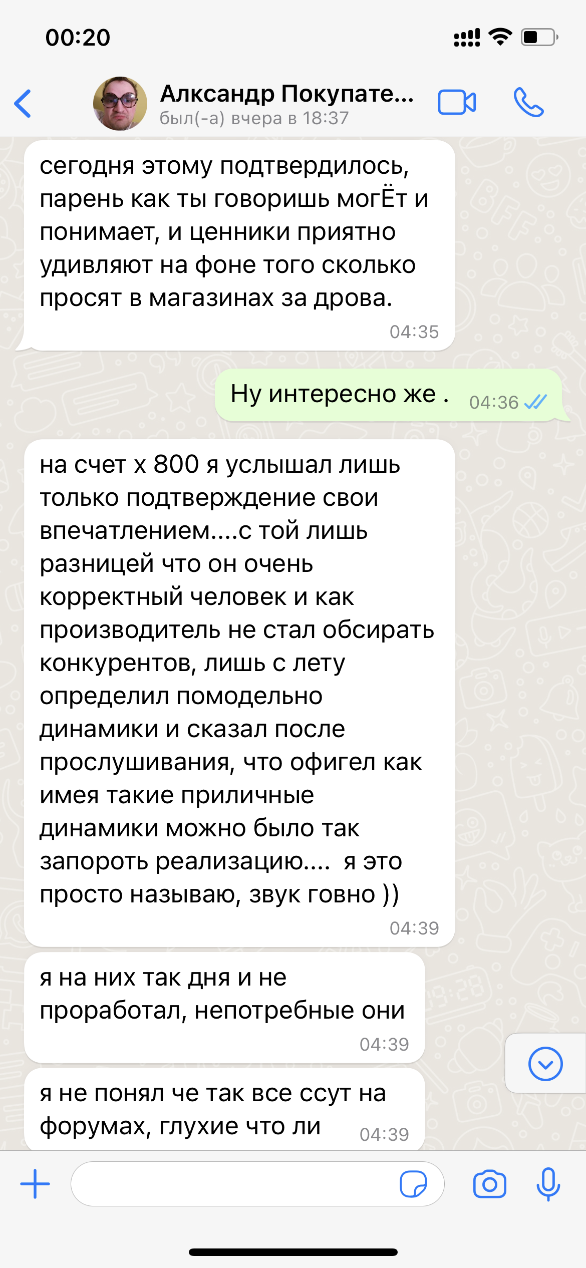 Что бы он связался с ним( как выяснилось ,человека зовут Игнат, то что он делает,есть по ссылке ) по поводу "модинга" фильтра. Покупатель моих бывших Х-800 не долго думая, связался с этим производителем, и так ,как оказалось,что они не далеко друг от друга живут, напросился к нему в гости ,дабы на месте всё окончательно понять и решить,что можно с x-800 сделать.. и можно ли,.... соответственно прихватил с собой 800-е девайсы. Они их там отслушали ,сравнили с похожей моделью (Игната) и дальше более понятно на фотках...это небольшая переписка и фото "Нутра x-800" особенно всех динамиков без маркировки и конструктивно макетного фильтра в них же,....ну и учитывая стоимость комплектующих особенно 40 рублей за терминалы в мониторах которые стоят,если не ошибаюсь ,чуть ли не 160 т.р.... В общем я при переписке ,тихо опускал глаза в пол и ковырял в воображаемом песке носком ботинка:) Кто знает что такое 160 т.р,тот поймёт. Все фотки не влезли.