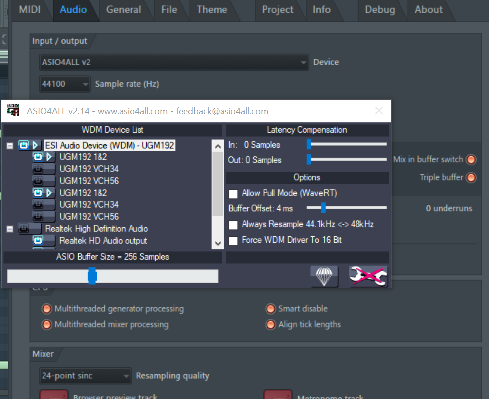 Ситуация такова, что при использовании FL Studio ASIO, всё работает, как в самой FL Studio, так и в Reaper.