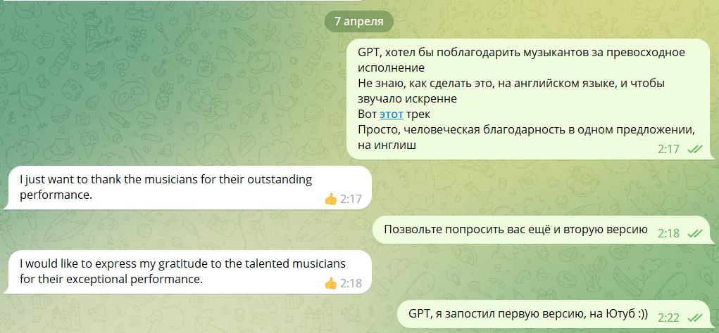 Прочел в новостях - трек каких-то чуваков завирусился и набрал 8 лям просмотров, причем сгенерирован трек нейросетью. Компьютер, в принципе, уже способен на неплохом уровне автоматически клепать ту музыку, которая нынче все более популярна - без какой-либо уникальной мелодии. Это, по сути, приближает нас к гибели искусства в высшем его понимании. Робот никогда не сможет написать что-то гениальное на уровне Фредди меркьюри или Бетховена, также, как и понять добро и зло, проявить чувство любви и милосердия, или испытывать злость, робот не способен любить, сопереживать или обижаться, ибо у него нет души.