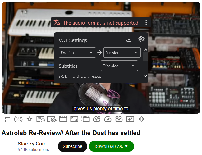 Установил как тут (https://github.com/ilyhalight/voice-over-translation) указано, но вот что-то не фурычит ((