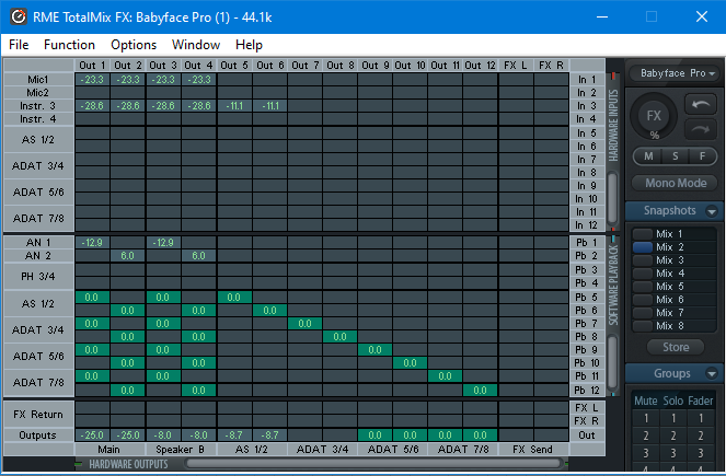 @Vladimirur, а зачем Вам прямой сигнал от Mic1 и Instr3 на выходе? Просто вычистите все в верхней секции матрицы для начала, авось и забудете о задержке. А так Вам и 0.5мс будет по ушам бить...