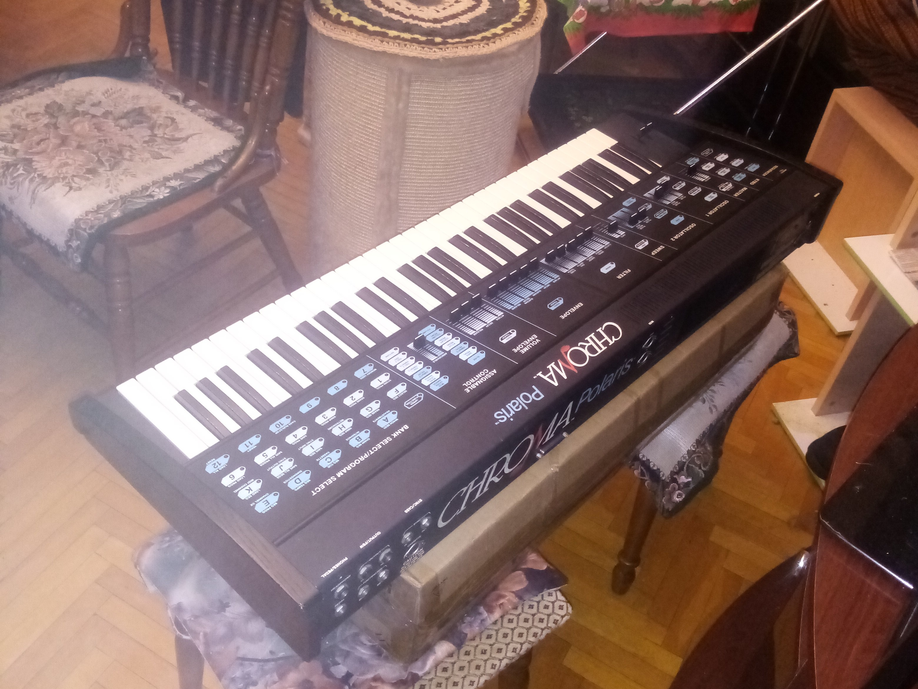 Очень редкий и жирный по звуку полифонический винтажный аналоговый синтезатор с миди и пресетами. Не похож ни на что другое. Звучит также, как Rhodes Chroma на видео от Mr Firechild в YouTube , только полифония 6 голосов.