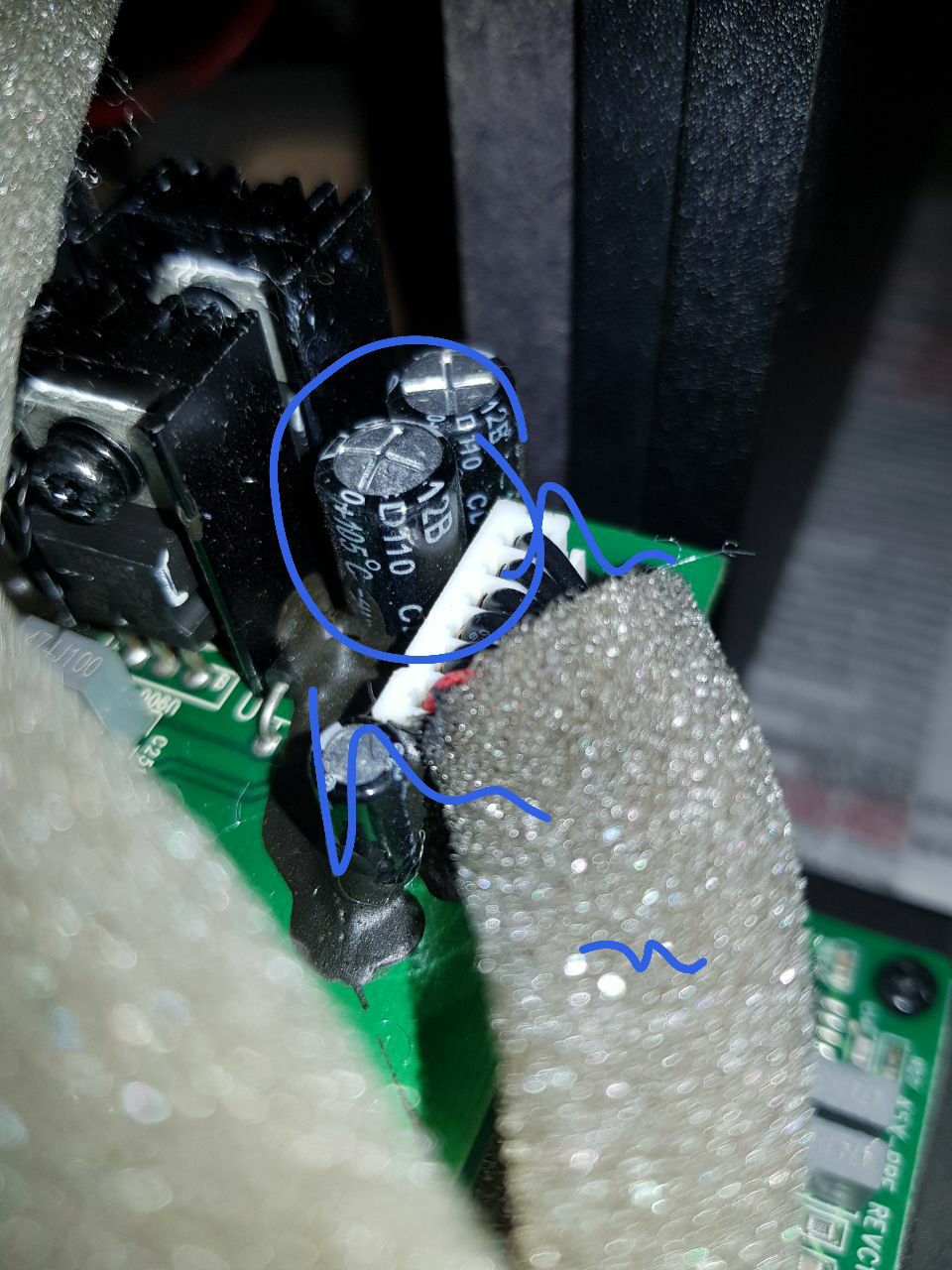 Всего на замену 7 кондёров, 2 больших и 5 маленьких, все на верхней плате, вы большие меняли?