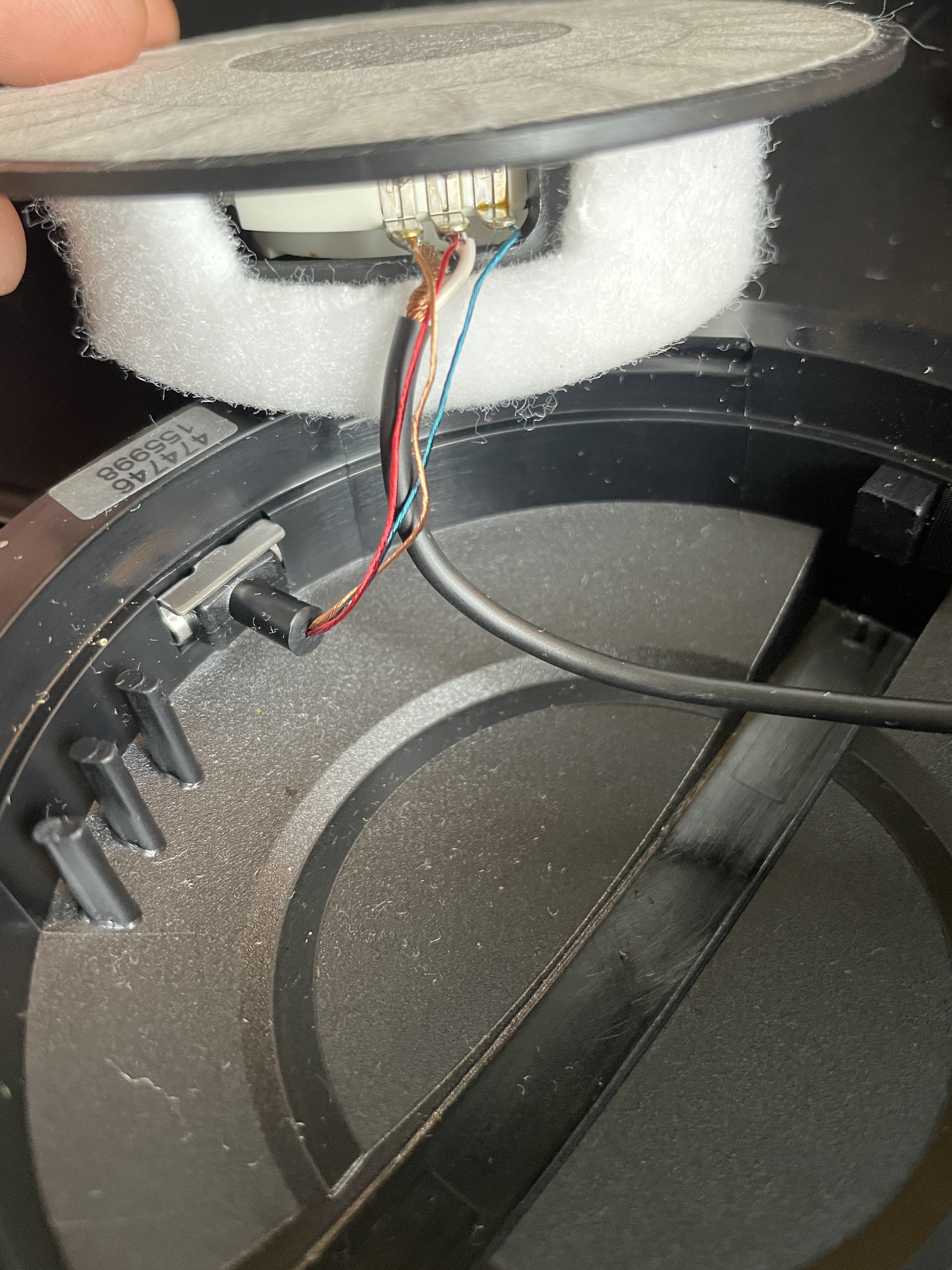 Плавающий контакт. Где-то провод на соплях держался. Возможно, провод, проходящий в оголовье от левой чашки к правой.