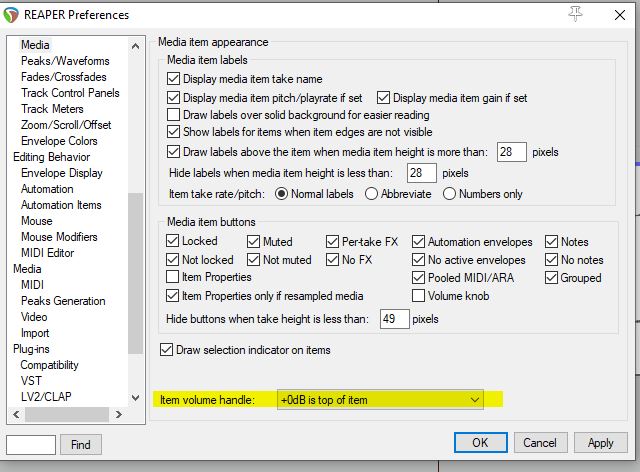 Поставил знакомым Рипер на винду 10 (сам на мак работаю) и столкнулся с проблемкой: мышью не регулируется Гейн отдельного айтема. В нормальном варианте при наведении курсора на верхнюю часть айтема он превращается в инструмент регулировки уровня, а тут нет. При этом рядом с названием айтема есть кнопка мьют и добавление плагинов на айтем. Думал там они какой то конфигуратор применили, говорят нет. Гейн айтема можно в меню цифрой регулировать, но мышью сверху удобнее. Как эту функцию вернуть? Фейд по краям айтема нормально работает.