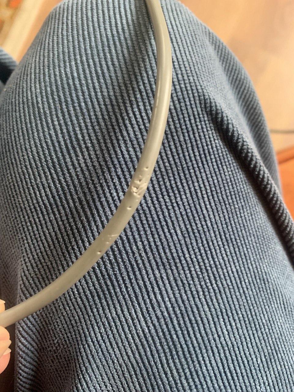 Какая-то царапка на дне и немного покусан провод питания кошкой, что никак не влияет на звук.