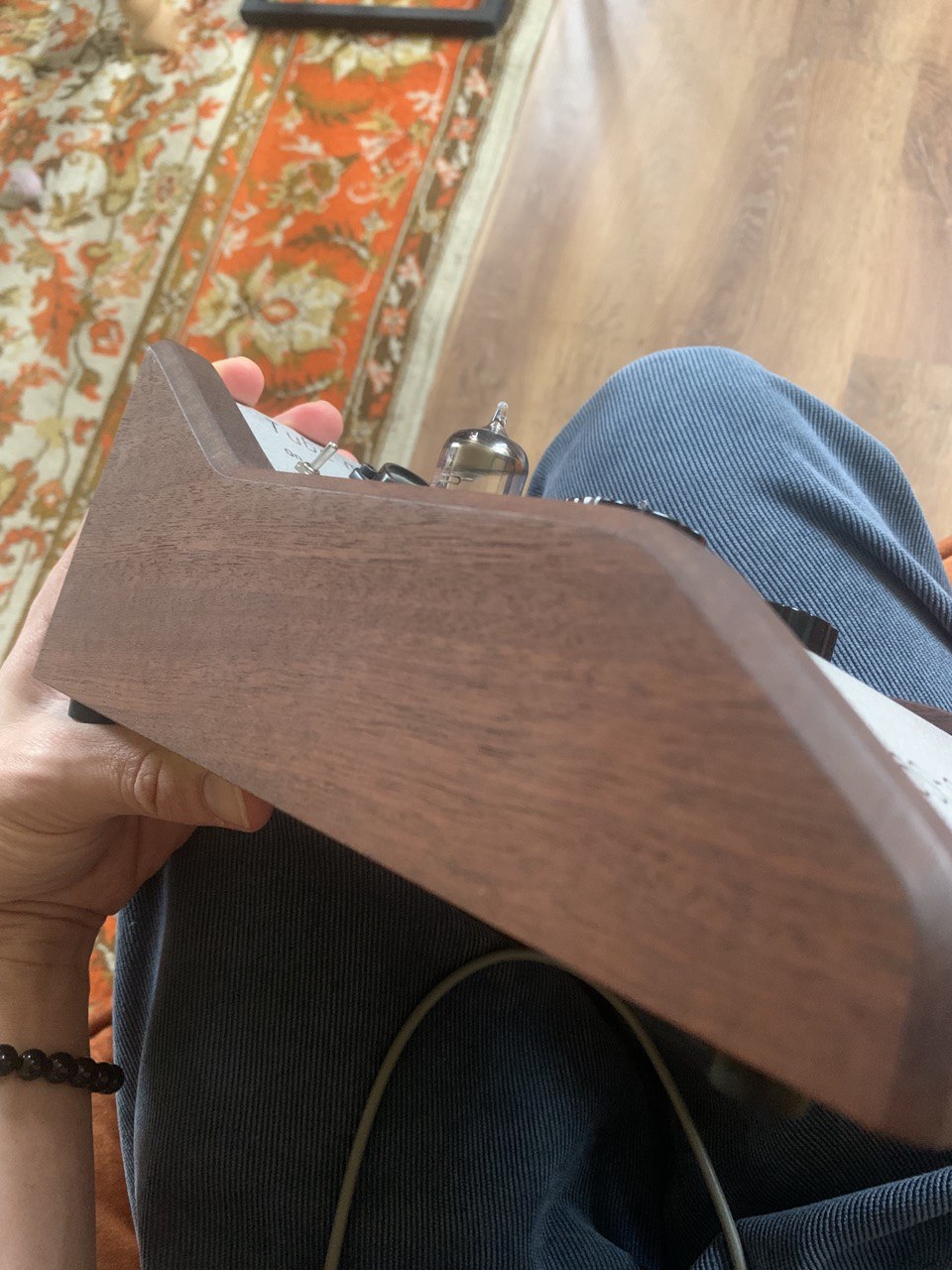 Прибор выполнен на лампах 6н24п/ECC89.А так же имеет выходной звуковой трансформатор для балансного выхода, гальванической развязки и трансформаторного окраса. Заметим, что все переключения тумблерами происходят без импульсного отклика или щелчка.
