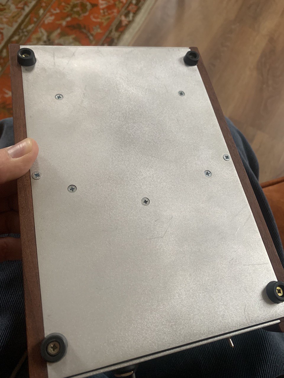 Материалы корпуса : фактурный алюминий и красное дерево.