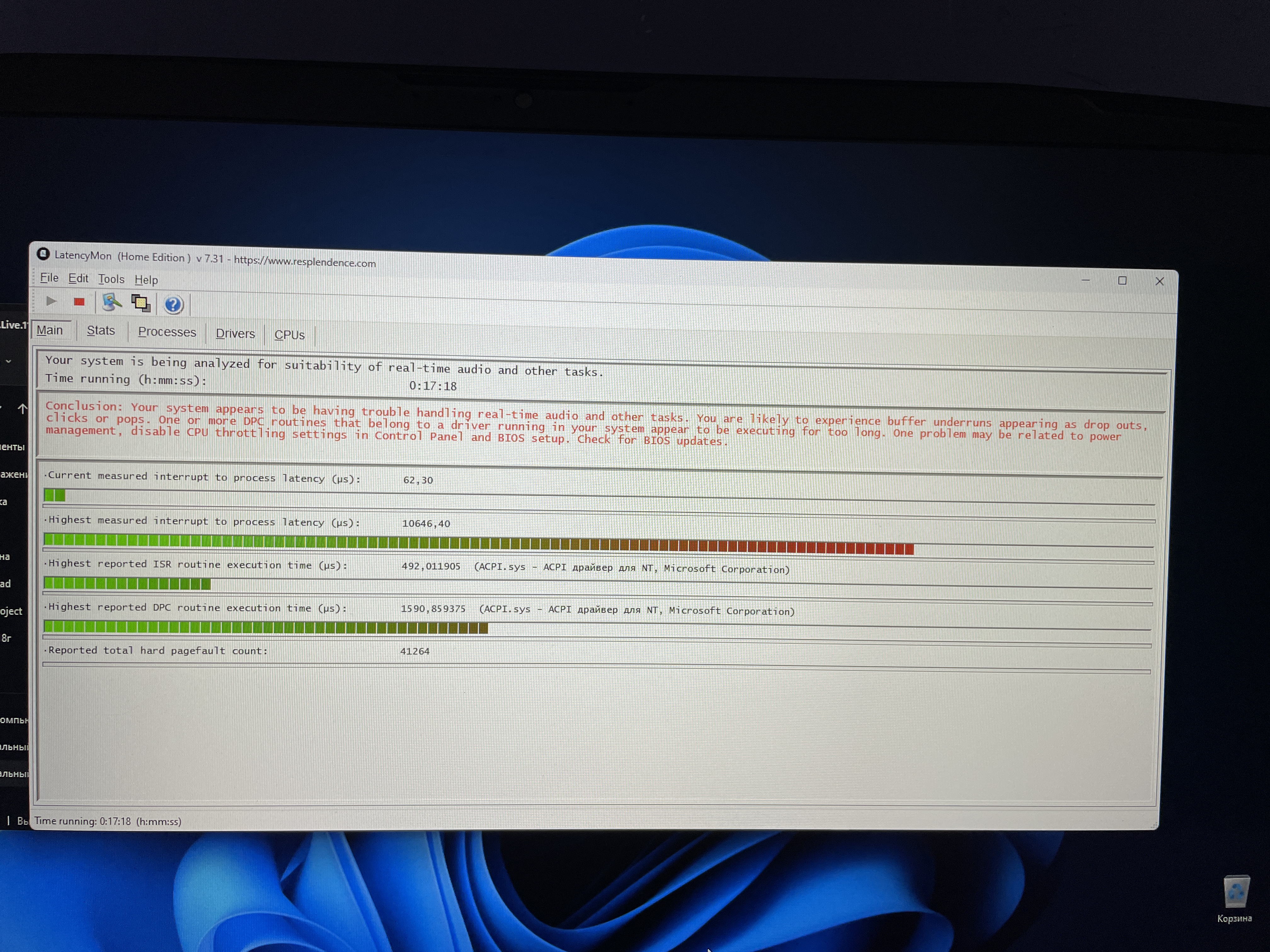 Работал с данной звуковой на ноутбуке MSI gl 63 8rd на windows 11. По началу на usb потом на type c ,все было в порядке. Приобрел Katana 17 B12VFK-271XRU, у звуковой с малым интервалом пропадает звук, либо роботизированный, нагрузка на процессор в DAW скачет от 1 до 25. Использовал две DAW. Самые распространенные манипуляции в плане обновления драйверов и настройки питания сделал, встроенную звуковую в биос отключал, в диспетчере задач все по отключал, биос обновленный, через Драйвер буст все обновил. Предположил что возможна несовместимость . Купил USB HUB. Проблема с пропаданием звука решилась. Треск и нагрузка процессора остались прежними. Один только KONTAKT нагружает процессор до 35 с буфером 512. Темы с этой проблемой есть. Но решения нет. Предлагается все самое банальное. Может на новых ноутах в БИОС какой либо параметр надо поменять?