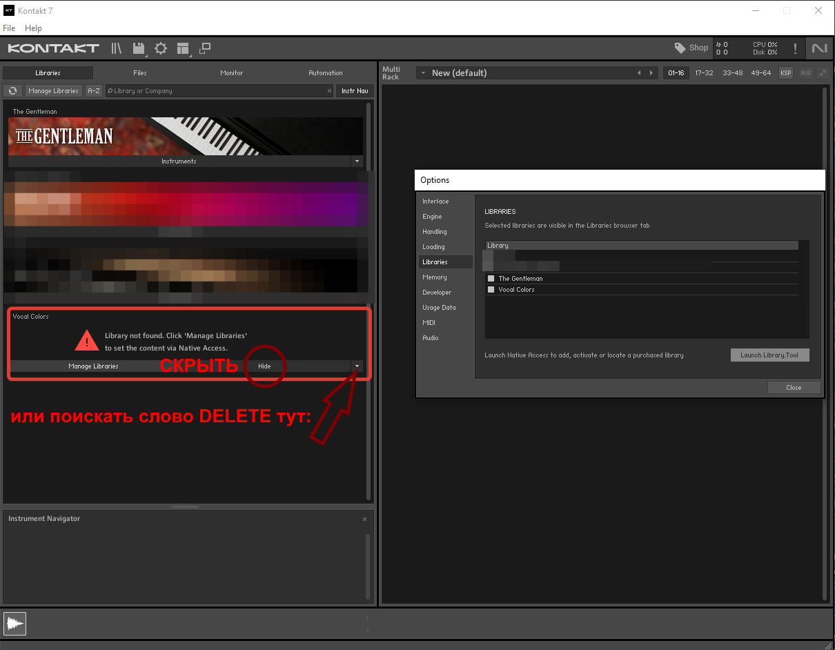 Как удалить библиотеку из семплера контакт? (2 онлайн)
