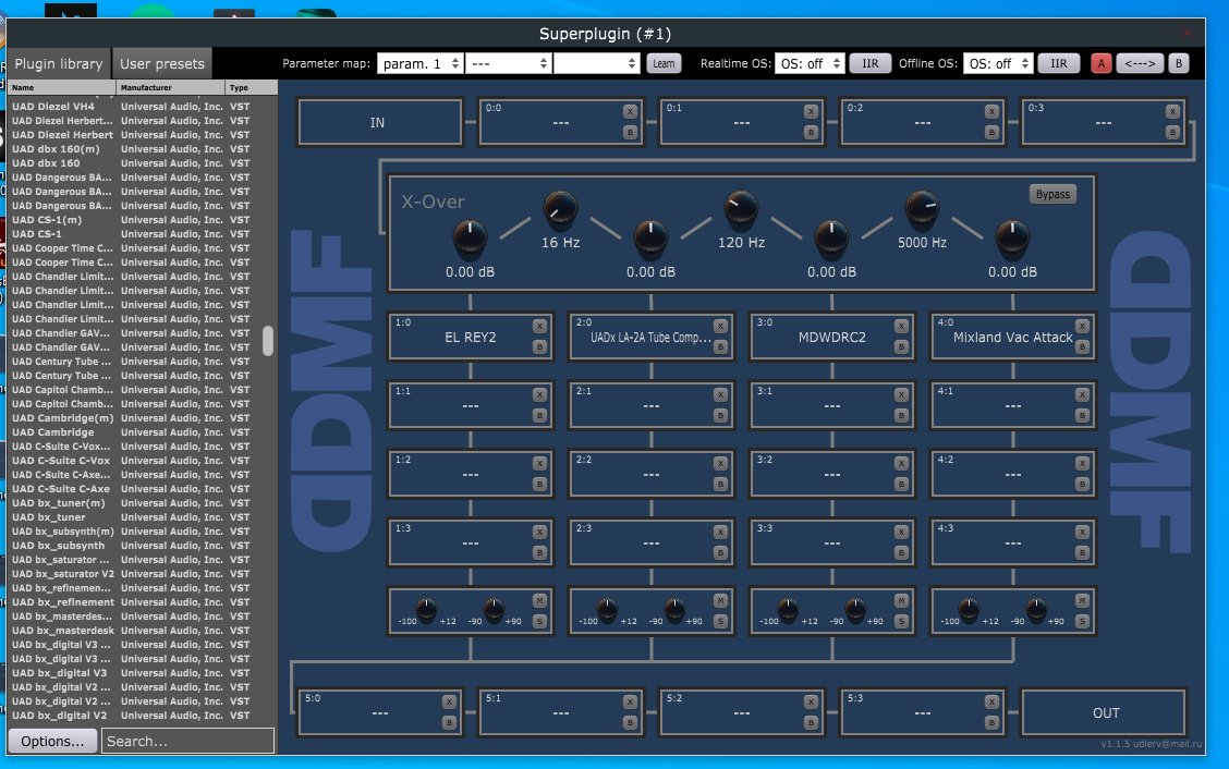 так верх обработай одним а другое другим, в чем сложность?Ну а вот ситуация например: мне не нравится как waves c4 обрабатывает верх, и предполжим я бы лучше верх обработал другим компрессором не важно каким. Как это сделать? С оьычным мультибэндником это не прокатит,вот собрать свой вариант ,гораздо интересней мне кажется.