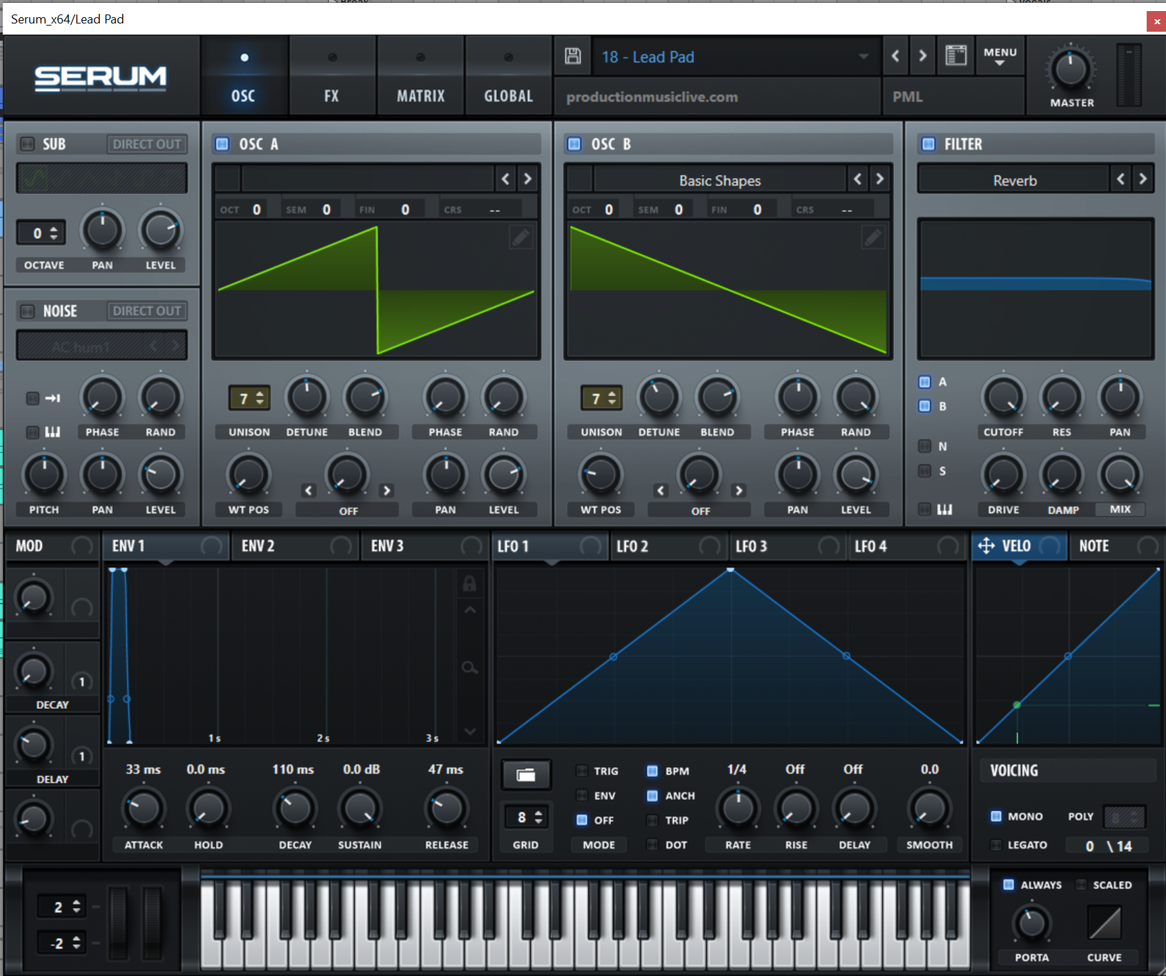 примерно вот так выглядит - второй осциллятор шарк поставил, вариации с третим OSС на суббасу слишком сильно влияют на характер звука - пока пытаюсь осцы в баланс тембра привести- уровень сигнала общий сильно падает - поэтому без 3-го
