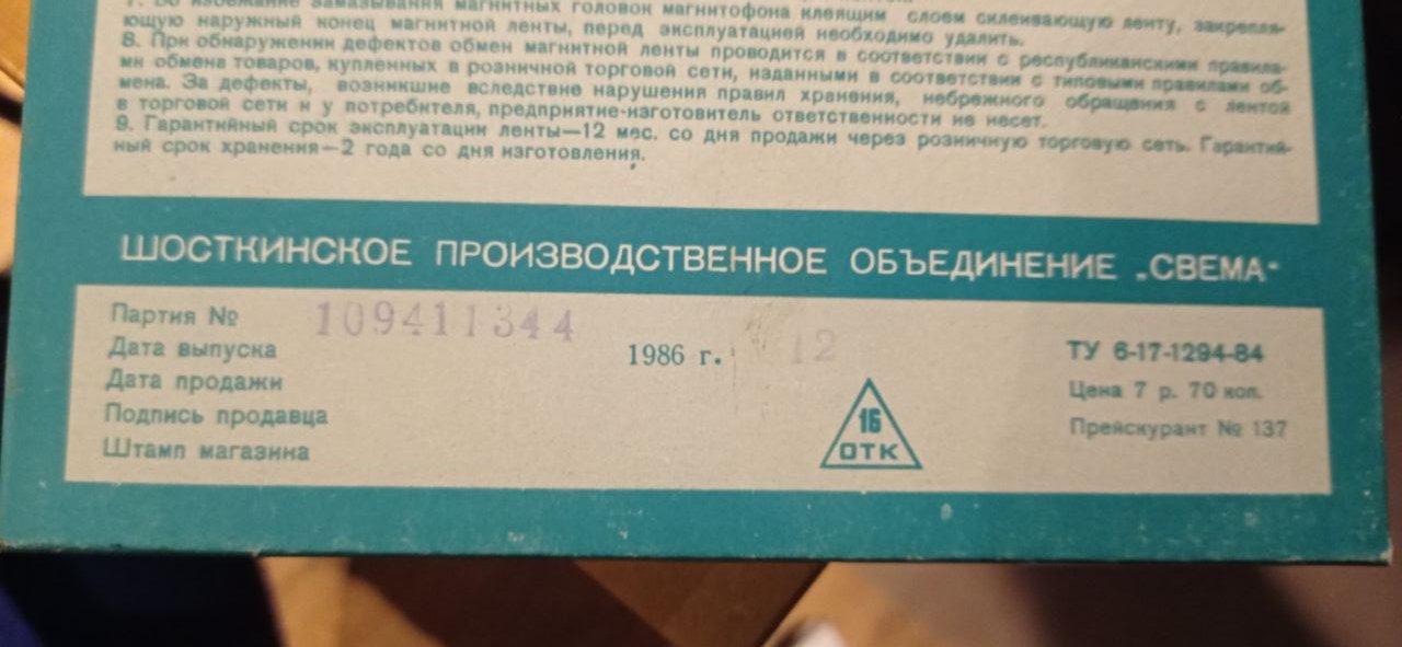 1986 года выпуска. Интересно, плёнка еще жива? Магнитофона под рукой нет проверить. Выглядят