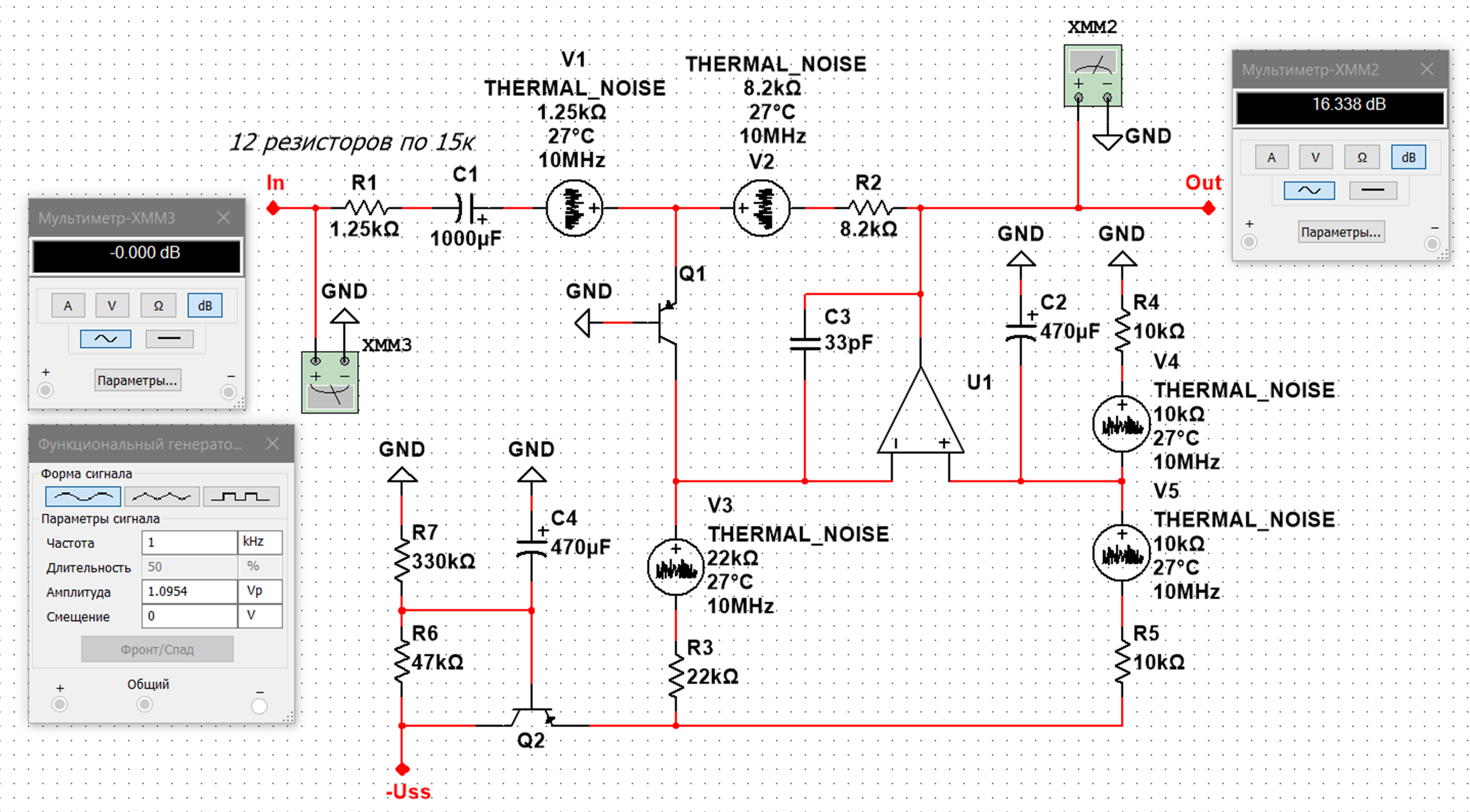 Все параметры шумовых генераторов, и мультиметра видны на скриншоте.