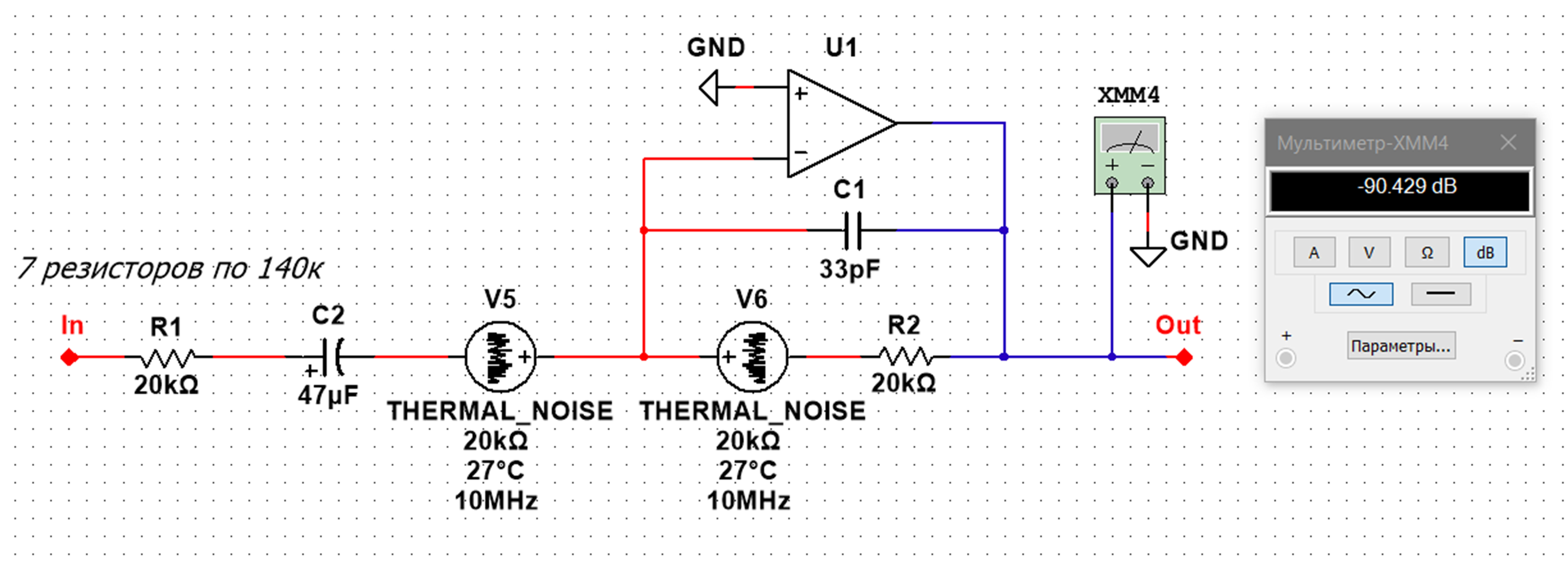 Во-вторых, сравнивать надо схемы с одинаковой обвязкой, тем более, что результирующий шум сумматора, в случае малошумящей исходной схемы, может определяться именно резисторами.