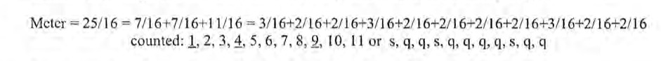тогда как мелодия может быть воспроизведена так, что может быть записано как (2 + 2) + (2 + 1) + (2 + 2) ,