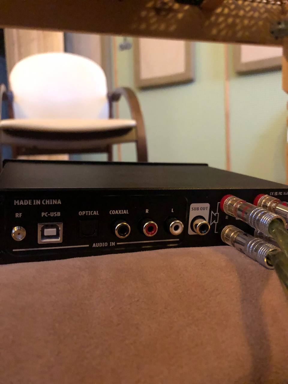 С него через провода XLR-RCA выходят те же два канала на вход усилка.
