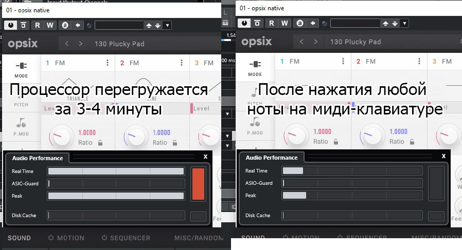 Коллеги, приветствую! Какая-то странность с инструментами Korg. В частности, Opsix грузит систему за 3-4 минуты, после нажатия на миди-клаву, его отпускает.