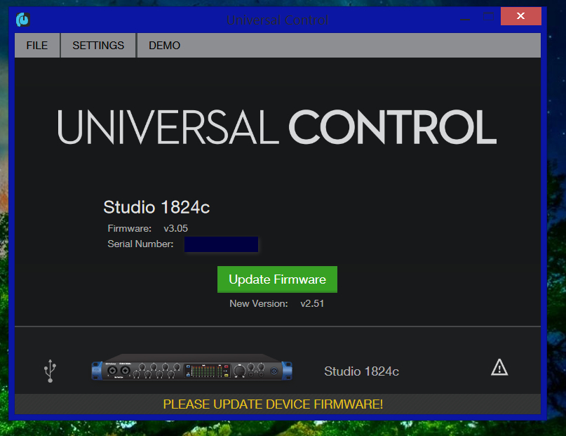 Здравствуйте товарищи музыканты и звукорежиссеры ! Подскажите, кто сталкивался с подобной проблемой: П.О для studio 1824c - Universal Control - просит откат до версии 2.5, но при попытке обновления вылетает сразу надпись - Not connect to the device, у кого такое было - дайте совет, как справились с этим, версии - Universal Control ставил все что есть с оф сайта - ничего не помогло, usb - тоже переключал, 2.0/3.0 - безуспешно...