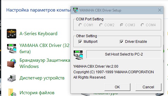 Продолжаю эксперимент :) Нашёл ноут с 32 битной Windows 10, драйвер для шнура опять нашёлся виндой самостоятельно при подключении к интернету, драйвер Yamaha CBX установился и ПОЯВИЛСЯ в Кейкволке!! Но... при попытке сделать его по входу и выходу пишет ошибку, что устройство уже занято... Кем (чем) занято - не понимаю. И я совсем не уверен, что Windows 7 обнаружит драйвер в интернете, так как обновление 7-ки закончилось....