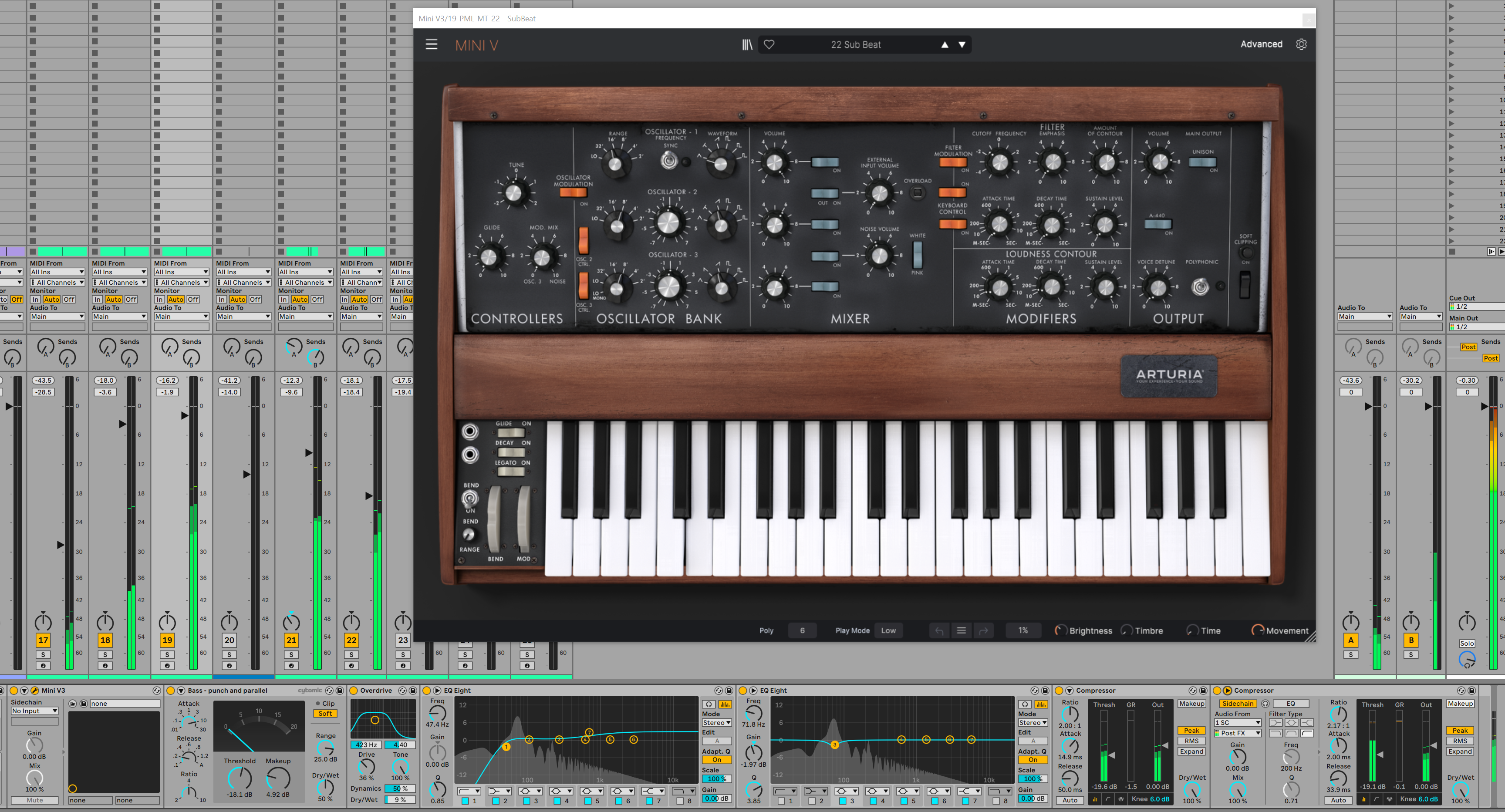 Итак, с учетом замечаний по басу от Ильи (поменял на артурию минимуг Sub beat ), а также рекомендаций от Alexpen и других коллег, двигаемся дальше: