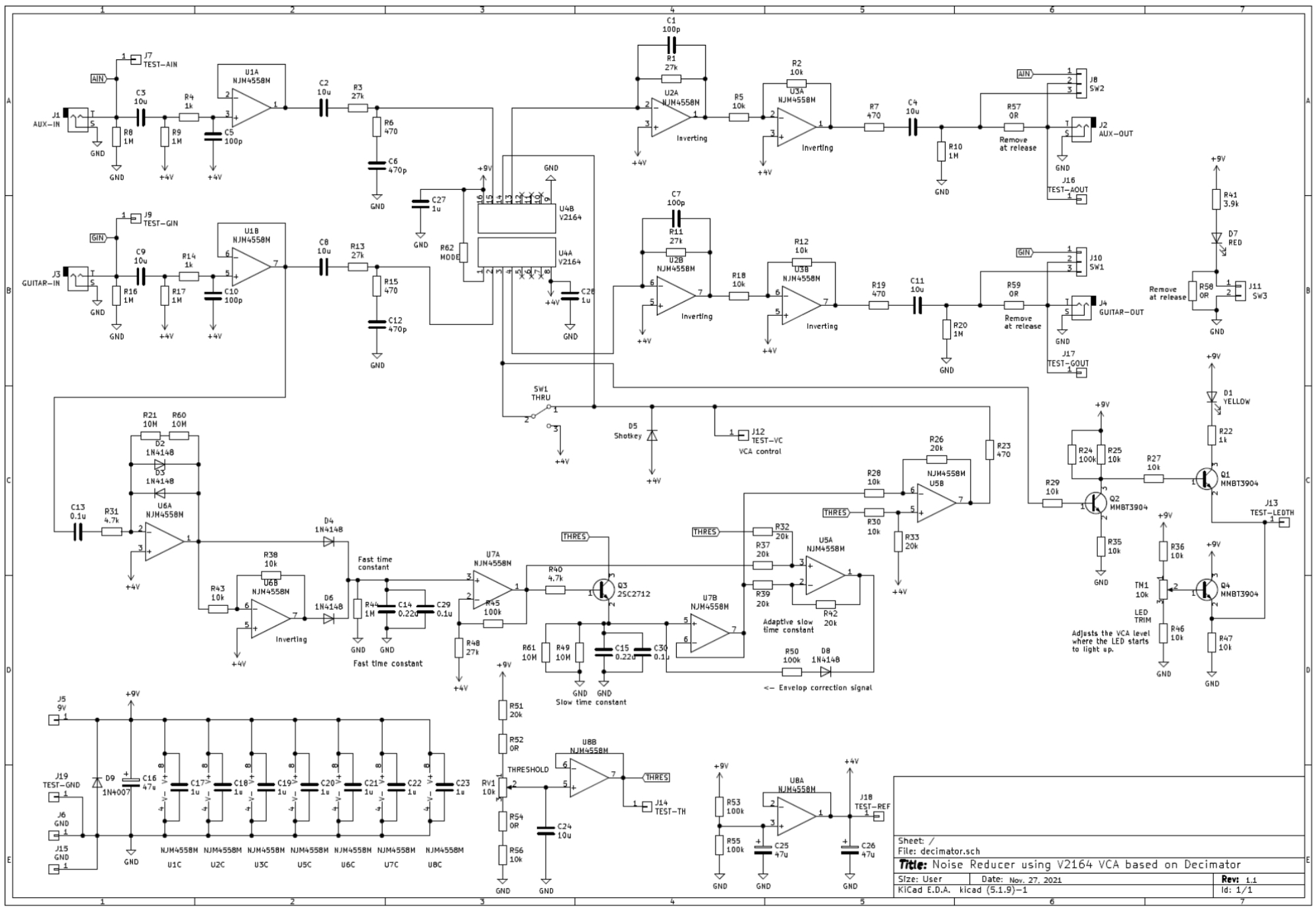 Коллеги электронщики, подскажите, пожалуйста. Решил из любопытства глянуть схему гитарного нойз-гейта Boss NS-2.