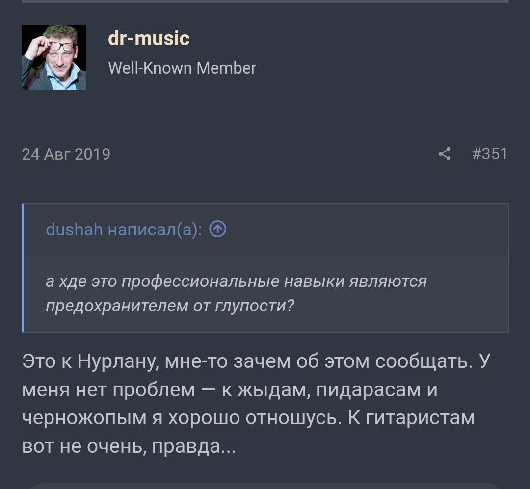 Ну там потерли всё жестко,и тема была вроде в другой ветке.Помню за него Олейник,Кактус,и ещё несколько человек заступились,потому что на нац почве там закрутилось жёстко.А начал это всё вот этот человек.Бункер это подхватил,после чего там куча людей за чурку начали говорить.Батырхана приписали потом туда же.Все это потерли,но участники они все здесь на форуме.