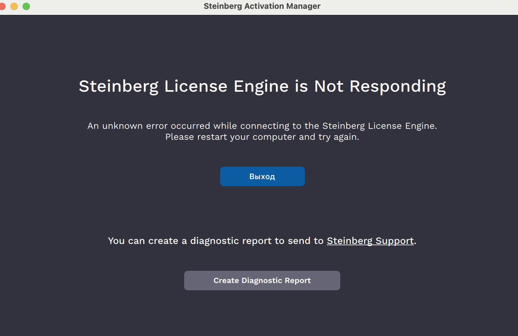 Здравствуйте, купила обновление с Cubase Pro 10.5 до Cubase 13, вставила Activation Code в USB-eLicenser, обновилось до Cubase 11, а далее требуется Steinberg Download Assistant и Steinberg Activation Manager, как я понимаю. Я их по многу раз скачивала и удаляла, в итоге Assistant не открывается совсем, а Manager пишет про ошибку (скрин прилагаю). У меня Мак с ОС Sonoma. Подскажите, пожалуйста, никто не сталкивался с таким? Пробовала с впн и без впн (платные и бесплатные), перезагружалась