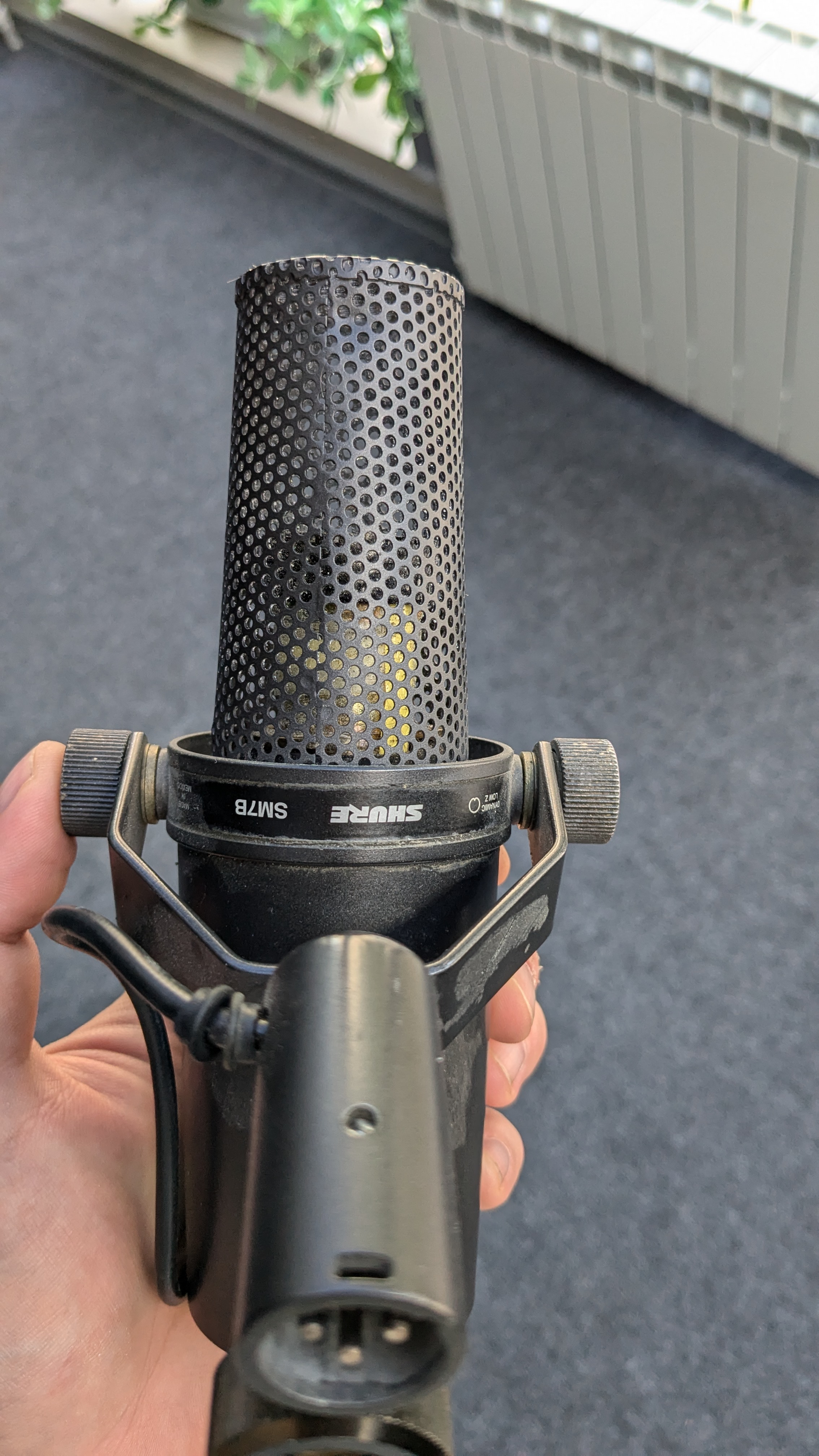 Возник вопрос в оригинальности микрофона, решил поинтересоваться у знающих людей. Дело в том, что давным-давно он достался мне в подарок, был убран в шкаф, и я про него успешно забыл, тк тогда необходимости в микрофоне и каких-либо записях не было. В последствии я начал заниматься подкастами, приобрёл себе новый Shure Sm7b (да, забавно, понимаю). Недавно во время ремонта нашёл в закромах этот спрятанный микрофон.