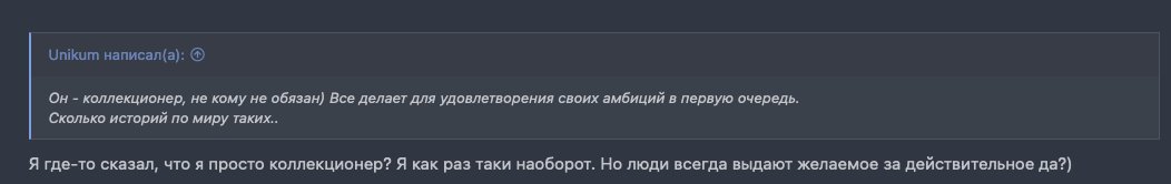 А то, что там выше упоминалось про доверие, недоверие, то я за других говорить не буду, но мне честно говоря, все равно доверяет мне кто-то или нет. Я делаю, что либо, в первую очередь потому, что мне это нравится и мне это нужно а не кому то там. Для себя я знаю, кто я и что я и те кому это нужно знают. Те же, кто по какой-то причине испытывает ко мне неприязнь и хочет найти к чему бы докопаться, всегда найдут повод это сделать. Я предлагаю тем, у кого есть ко мне вопросы написать мне в личку и все вопросы выяснить а не устраивать цирк, это не серьезно как-то. Вроде все взрослые люди тут. Пису пис как говорится.