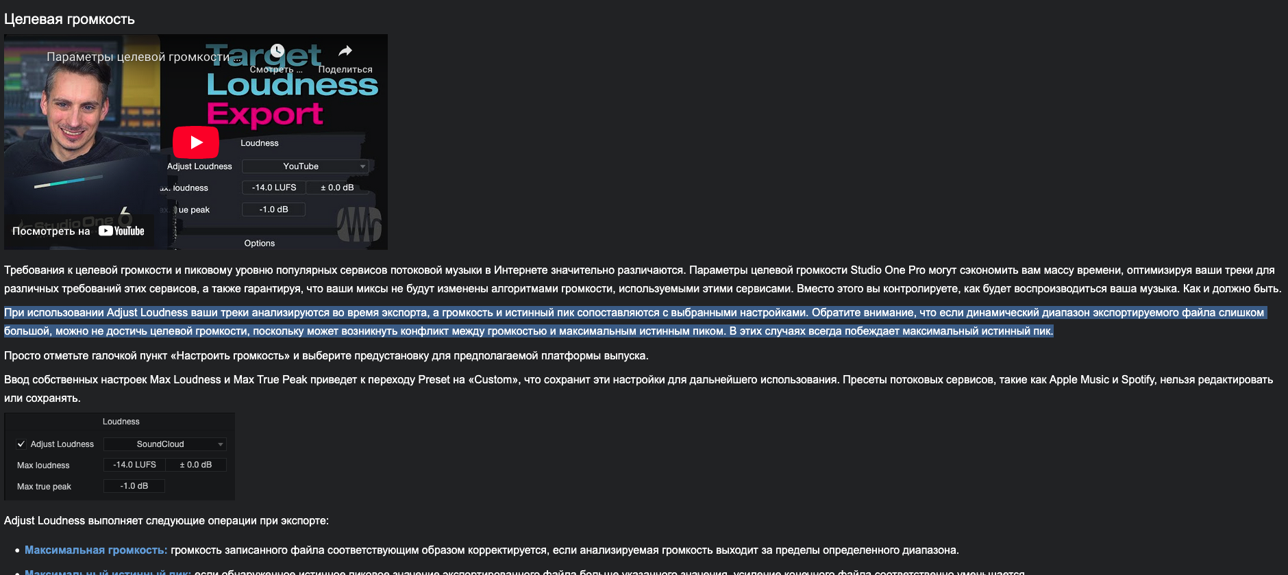 Ребят, вот такой вопрос. В С1 есть прекрасная функция, когда при export mixdown можно сразу выставить Loudness файла. Но судя по результату - Max.loudness - это не среднее значение (integrated)? Потому что сколько бы я не выставлял значение Max.loudness (например 7-9 Lufs), все равно на выходе получается среднее - 11-12 Lufs при true peak - 0,5-1. В Кубейсе, например, если делаешь нормализацию, он +- такое значение и выдает на выходе. Правда, там другой ньюанс, - чем больше значение Lufs, тем больше true peak (даже если последний указать -1, всё-равно зашкаливает). А если это в С1 integrated, то почему на выходе все-равно получается меньше?