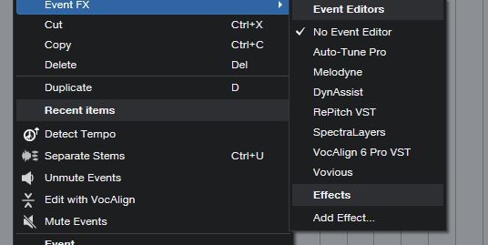 Кстати, интересует еще вопрос лучшей интеграции АРА. Например, в Кубейсе АРА плагины сразу видны в качестве интегрированных через контекстное меню (правая кнопка мыши) или в инфопанели. Коим образом их и можно сразу быстро запустить. В С1 в моем случае через контекстное меню отображаются только три плагина, остальные нужно как ВСТ3 искать в браузере и перетягивать на клип. Может это еще где-то дополнительно включается?