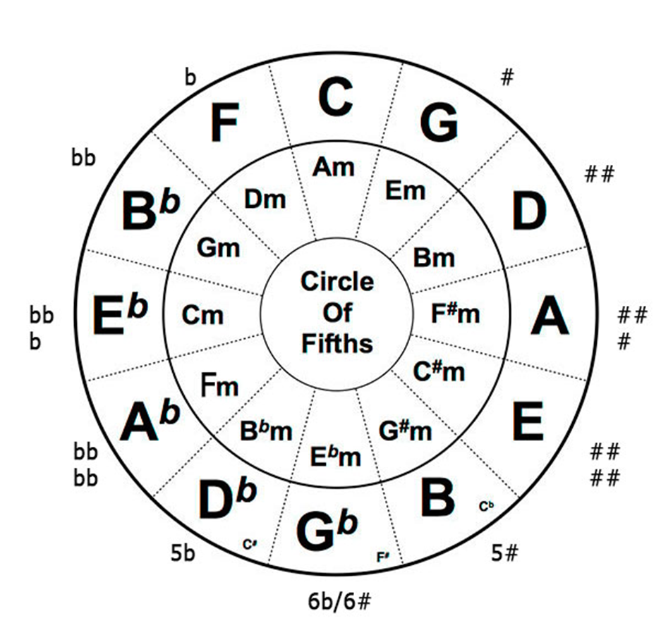 Для начала, кто не знает, предлагаю ознакомиться с шпаргалкой для сочинении музыки, кварто-квинтовый круг, это типа как таблица умножения, но для музыкантов :D