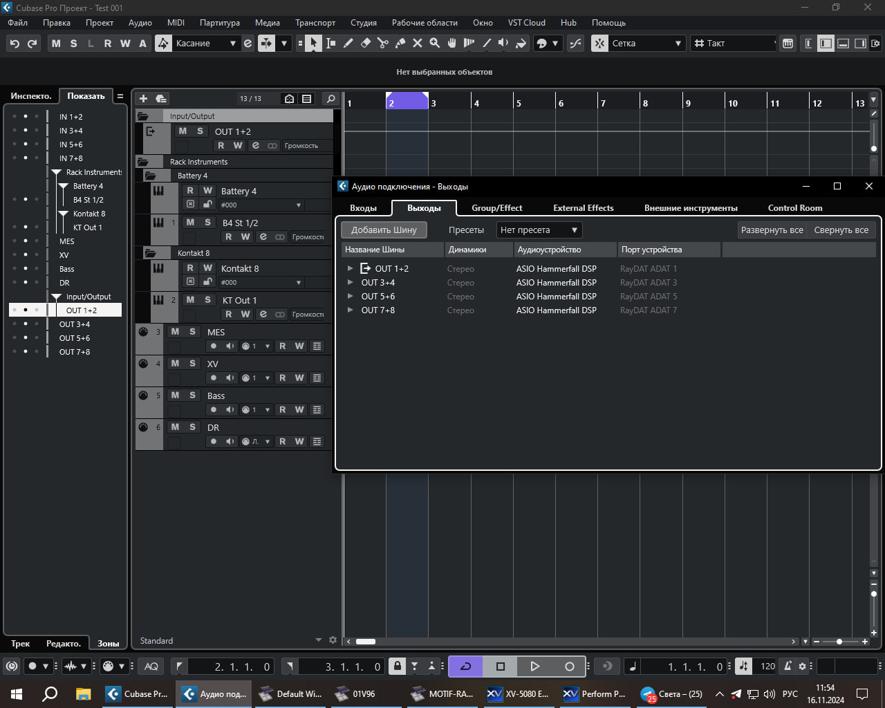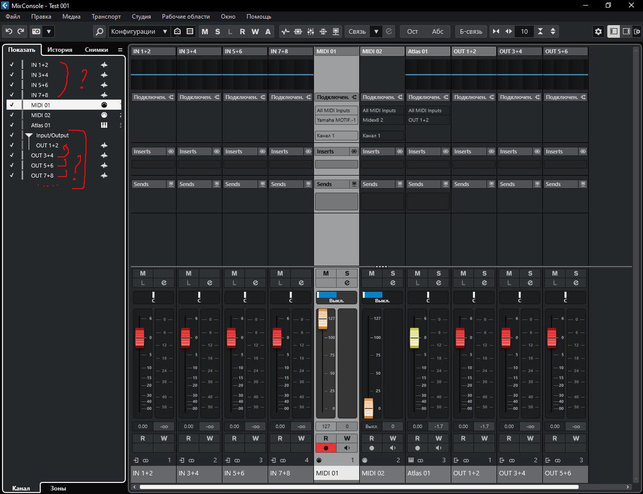 Подскажите пожалуйста, как управлять иерархией треков, каналов ввода-вывода в левой части окна проекта или микшера. Там есть спойлер вход/выход. в нем висит выход 1+2. так создался новый проект. затем, я через F4 добавил еще 3 стерео входа и выхода. Они не попали в этот спойлер, в окне проекта тоже висит фолдер с выход 1+2, но остальных не видно... в микшере видны все созданные мной входы выходы но как их сгруппировать... разобрался пока только как размешать слева, по центру, справа.