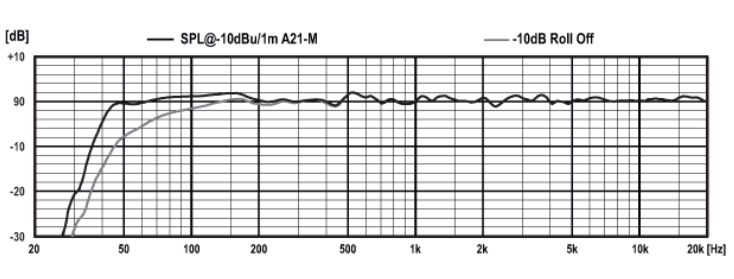 У ТС, PSI Audio А21-M Black. Диапазон частот при -6dB: 38-23000 Гц.