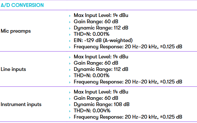 но важно учесть, что dynamic range там небольшой по меркам конкурентов. И Mic gain 60dB.