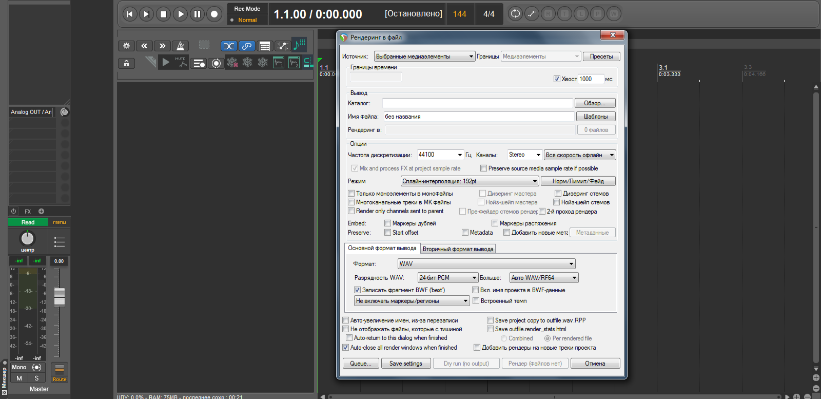 Есть вариант рендеринга тейков, но при таком варианте они рендерятся не с 0 сек, а с того места где он начинается. Вот если этот момент можно как то изменить в настройках - будет просто космос. Вообще рипер очень хорошая daw, я уверен что это как то можно накрутить, но где эти настройки запрятал сквозь тонны настроек производитель этой DAW, остается загадкой