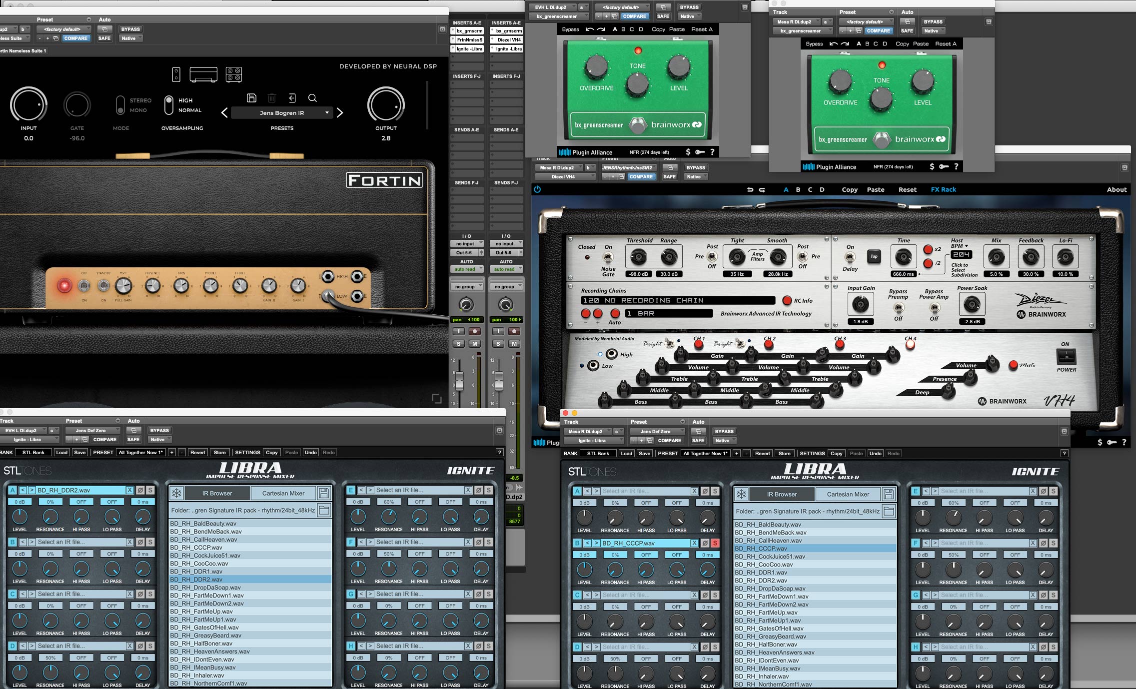 Когда покупаешь ампсимов от плагин альянс, как минимум их Дизель (но и ещё как минимум в одном есть) - тебе прилагается папка скриншотов с рабочего стола Богрена, где показано как он эти плагины использует в продакшене. Их, и ещё нейрал дсп