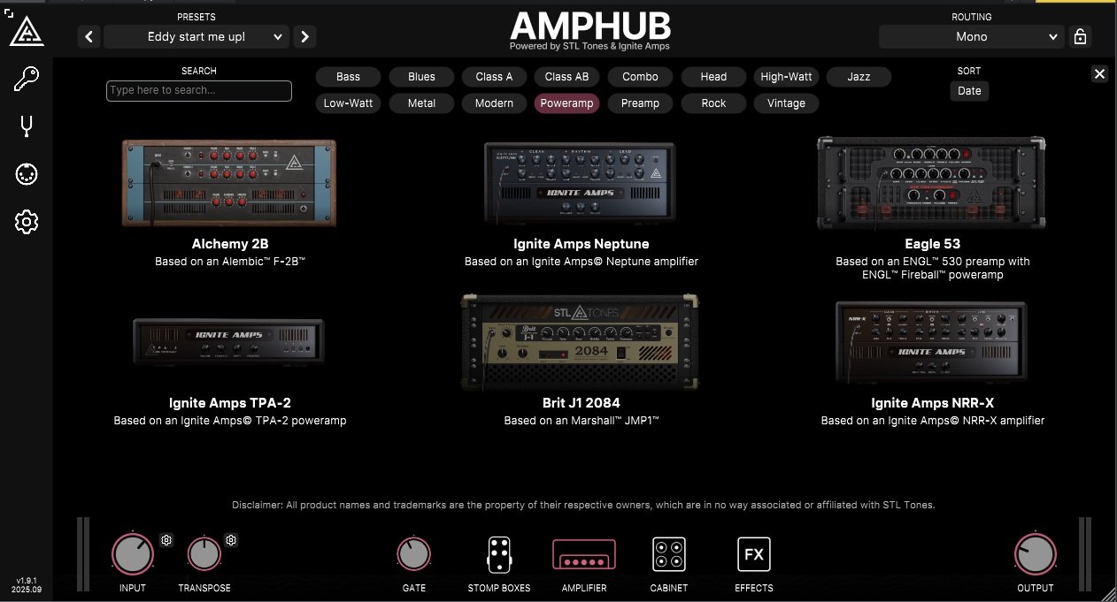 ignite amps никакой, а вот некоторые мощники в stl amphub довольно хороши (engl и marshall - преды там отключаемые).