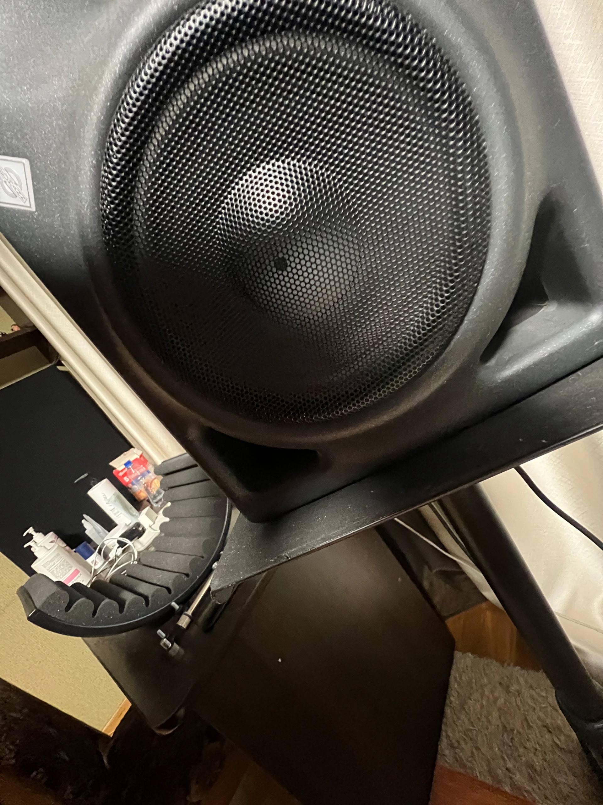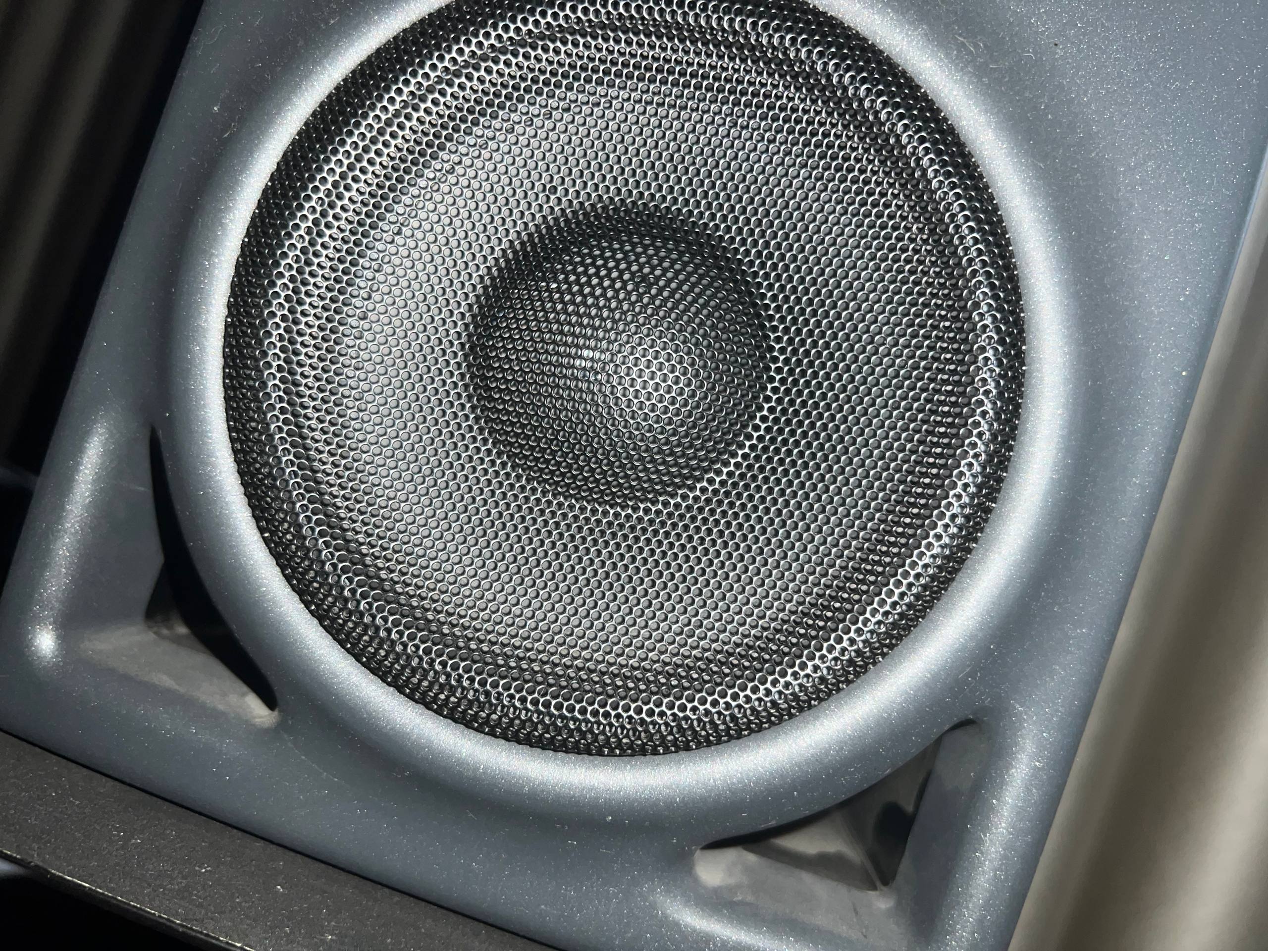 Никогда не обращал внимания, сегодня при определенном освещении , прям в глаз этот блесток кинулся . На вуфере под решеткой несколько черных пятен, как будто содрано или краска , которая выглядит как черное пятно, но при попадании света , начинает отражаться белым . На фото тяжело это прям четко разглядеть, постарался сфоткать как мог , но вживую это прям бросается в глаза , если отьехать от мониторов и смотреть . На работоспособность вообще не влияет , что это может быть , кто-нибудь знает?