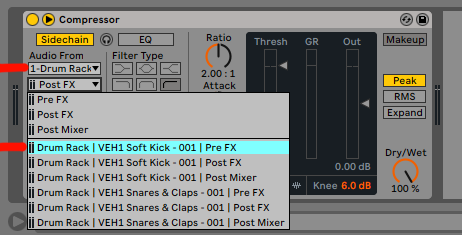 Друзья, подскажите можно ли посыл сделать из бочки в драм рэке на компрессор, который стоит на басу? Типо сайдчейн только с бочки, а то у меня в источниках посыла весь драм рэк :D