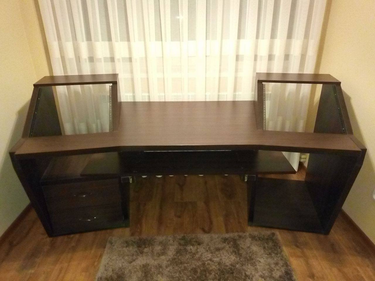 Первый моник весит по моему размеру. Разрешение на нём 2560х1440 при диагонали 24'. На нём всё умещается. Мне хватает. Второй моник вспомогательный, я на него почти не смотрю. Он для того, чтобы скинуть мешающие окна, или киношку посмотреть, откинувшись на кресле (тоже кайфово).Надеюсь в стуле тоже дырочка-очко есть с самоотводом...ну что-бы не вставать?)))) Второй монитор за высоко будет если целый день с ним работать..да и первый за высоко. Первому самое лучшее место на уровне клавы. Ну поработаешь сам поймёшь и перестроишь. Так то красиво но практическая сторона покажет позже себя. Я тоже вечно что-то переделываю так как по мере работы начинаешь понимать что и где лучше находилось бы. Углы обработай на выдвижной полке..Эти угольники острые (чем обшил) мимо проходя можно штаны порвать если заденешь.