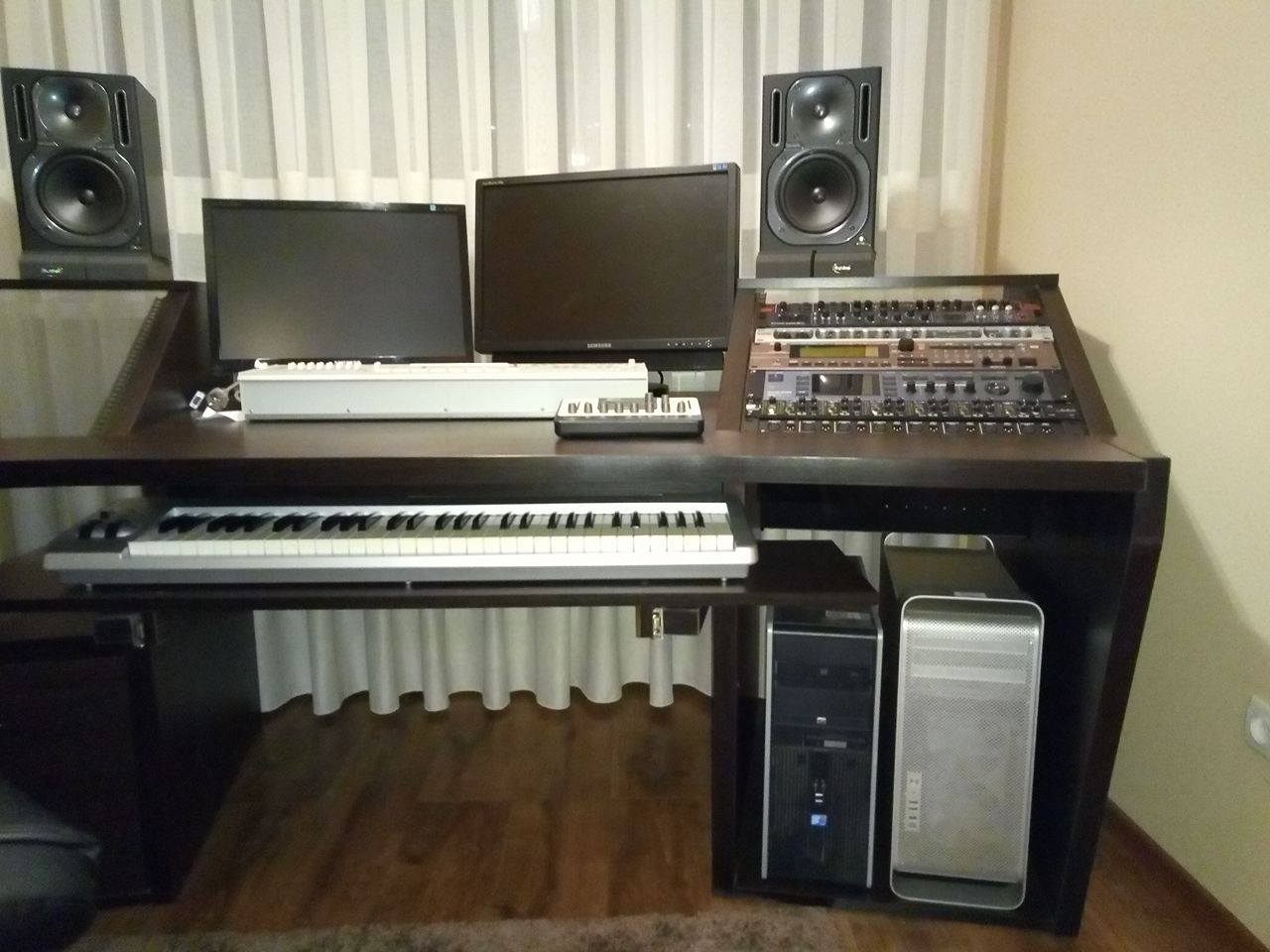 Не могу рассмотреть - "синтезаторная полка" выдвигается(?), или клава просто перетаскивается по ней вглубь\наружу?...Вот такой себе сделал,...