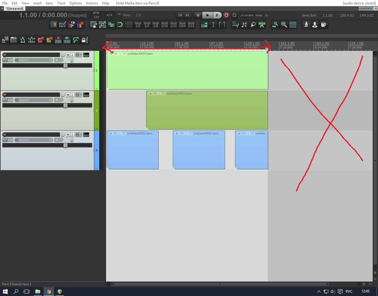 А оно и не прерывается. И воспроизведение не перескакивент на новое положение курсора (так эта вертикальная линия называется), если вы тыкате в айтэм, а не в свободное поле в аранже.А не подскажите, как сделать так, чтобы при клике мышкой в арранджменте во время воспроизведения трека, воспроизведение не прерывалось и не перескакивало в то место, куда кликнул? (В место где появляется эта длинная вертикальная линия.)