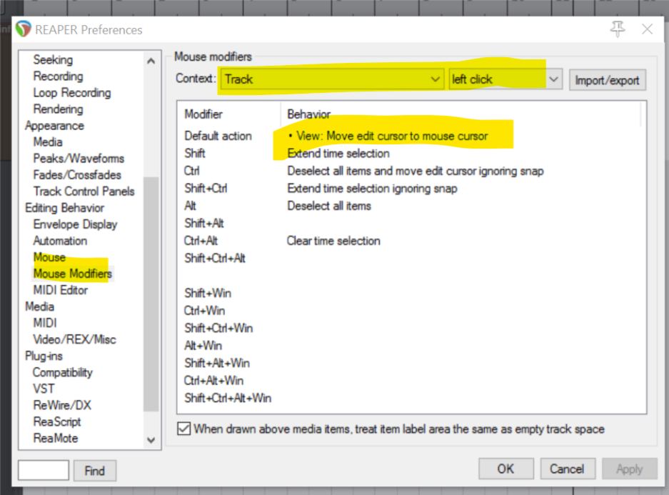 Спрошу еще раз. По умолчанию на левый клик по треку в аранже - снимает выделение с айтемов и перескакивает на лету по воспроизведению.