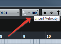 Мало того, в Cubase "Fixed velocity" работает еще и в окне аранжировки (основном окне) к выделенному миди событию (ям) через тот же хоткей