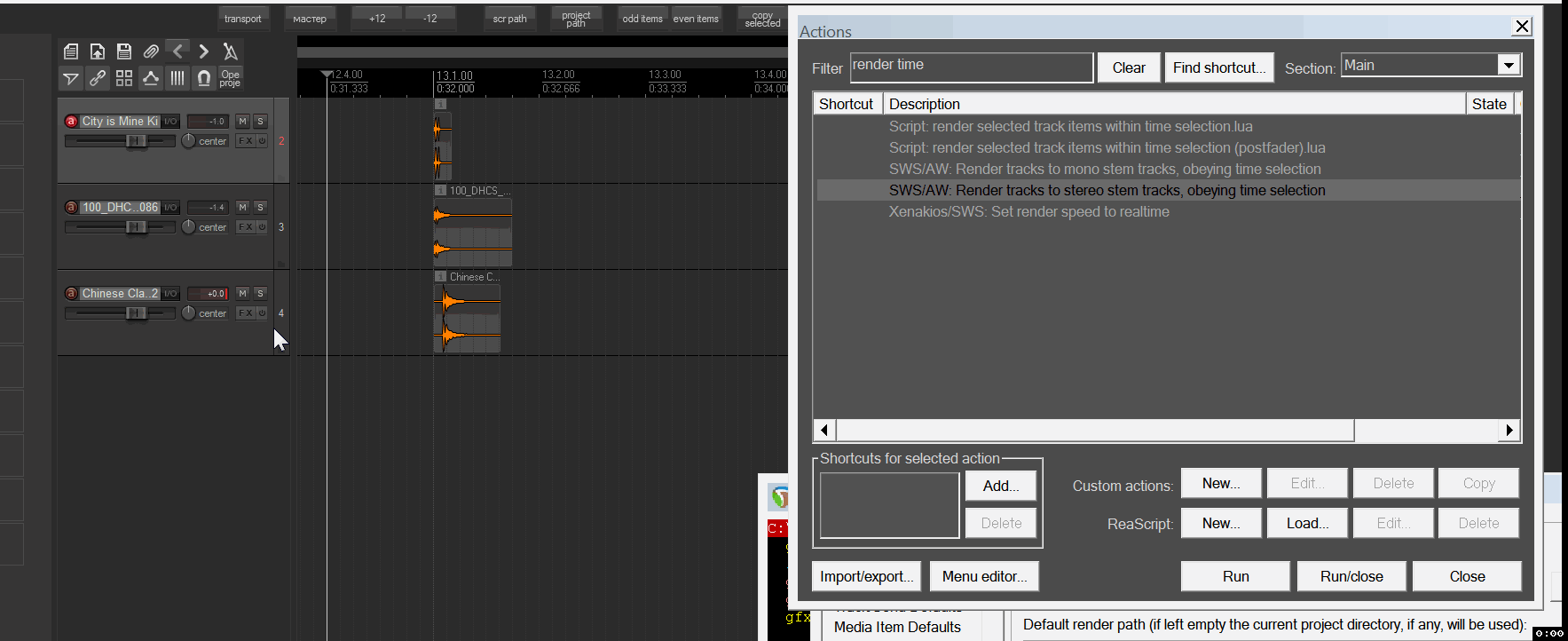 создать папку из выделенных треков и запустить один из экшенов рендера