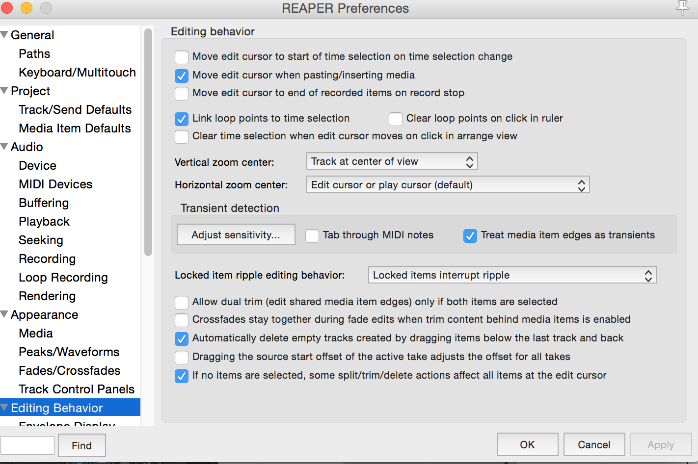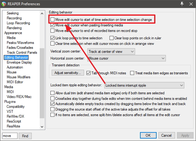@alexvg, я в "модивикациях мыши" сделал так чтоб как у аблетона было примерно, т.е не перетягиванием меняю размер а тыком мыши с зажатой кнопкой . в зависимости от кнопки двигается правый или левый локатор. Но проблема в том что вместе с ним двигается и таймлайн. И по этому если так тыкать , с жатой "плей" то меняется произвольно выделенная область. Если тянуть то не меняется, но тянуть не удобно