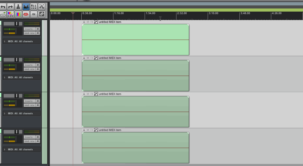 Нажал выделить всё <Ctrl>+<A>Выделил вертикальную зону Time Selection